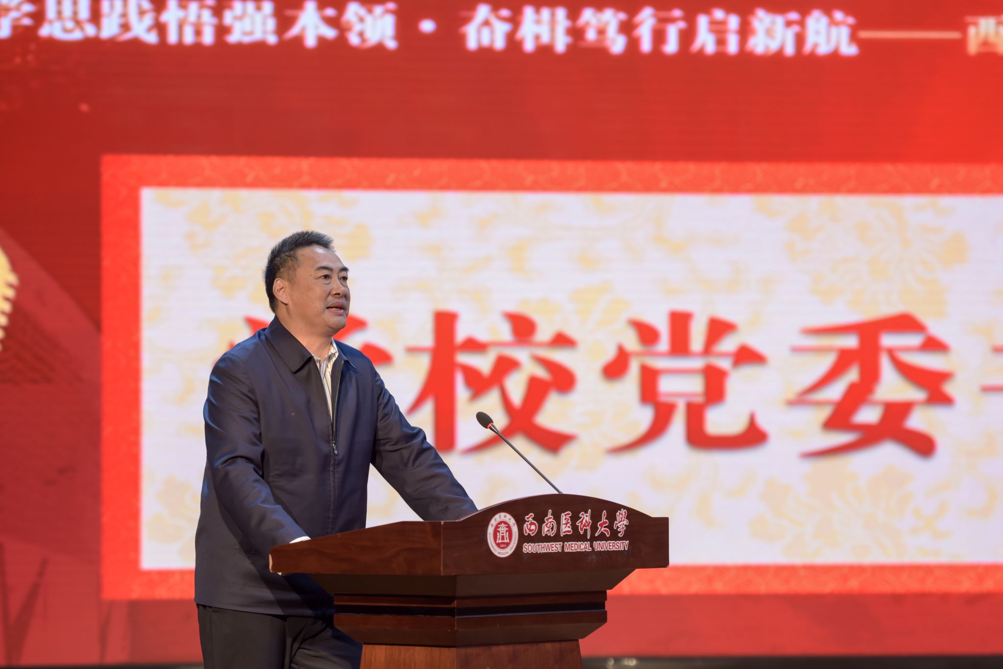 1210日下午,学校在城北校区第一学术报告厅隆重举办主题为“学思践悟强本领 奋楫笃行启新航”的2023年学生工作“创先争优”暨社会类奖学金颁奖典礼。学校党委书记廖斌、党委副书记刘毅、副校长代荣阳、副校长江涌、副校长赵领,学校各相关职能负责人,各院系党委(党总支)书记或院长,全体学生政工干部,捐资助学爱心企业泸州老窖股份有限公司代表任中榕等、泸州农村商业银行股份有限公司代表苏建强等、深圳市康哲药业有限公司代表黄鑫等、四川宝瑞雅珠宝有限公司代表杜山江等,受表彰的集体和个人代表以及学生代表共计600余人出席并参加颁奖典礼。