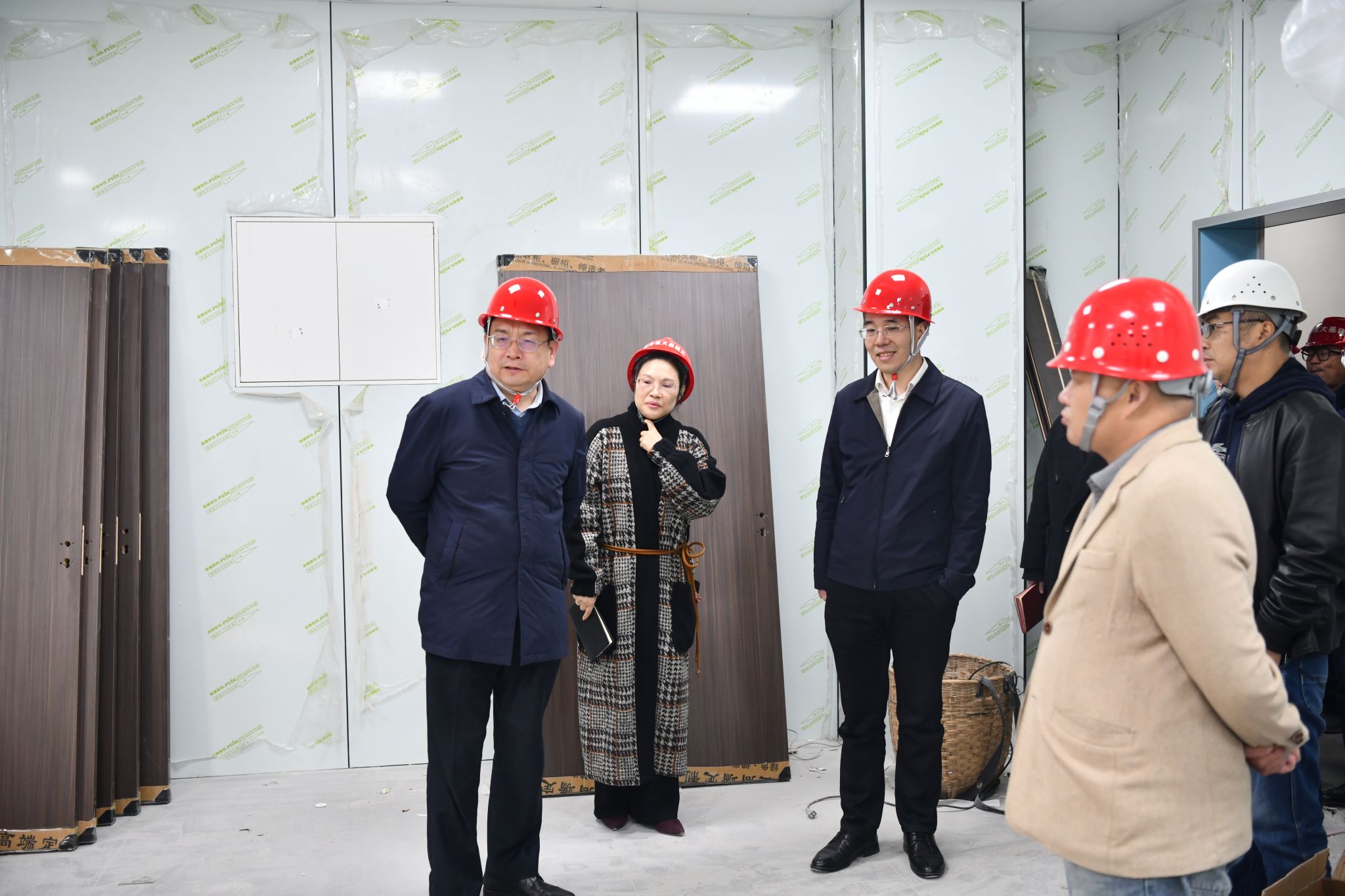 张春祥一行重点视察了入口大厅、医学博物馆、急救技能实训室、模拟手术室等功能房间,听取了项目进展情况的具体汇报,了解项目推进过程中存在的困难和问题,并就安全生产、项目进度、周边环境、整体工作统筹等方面提出了指导意见。