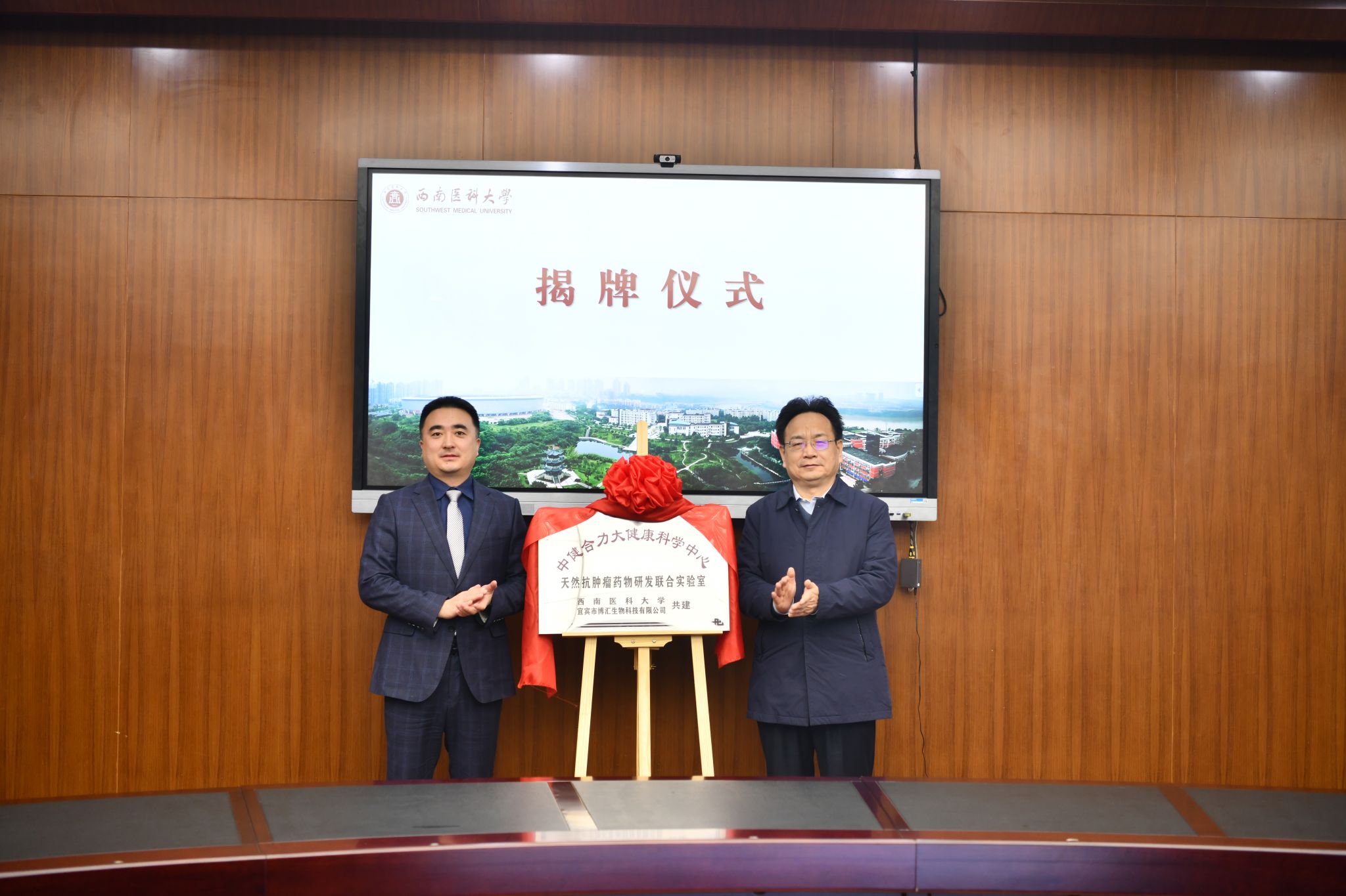 双方签署了战略合作协议,为双方共建实验室——“中健合力大健康科学中心天然抗肿瘤药物研发联合实验室”揭牌并颁发聘书。这预示双方战略合作将进入新阶段,共同促进校企抗肿瘤药物研究与转化、加速教育部医药基础研究创新中心发展、助力宜宾-泸州经济副中心建设,为推进“健康中国2030”战略作出贡献。