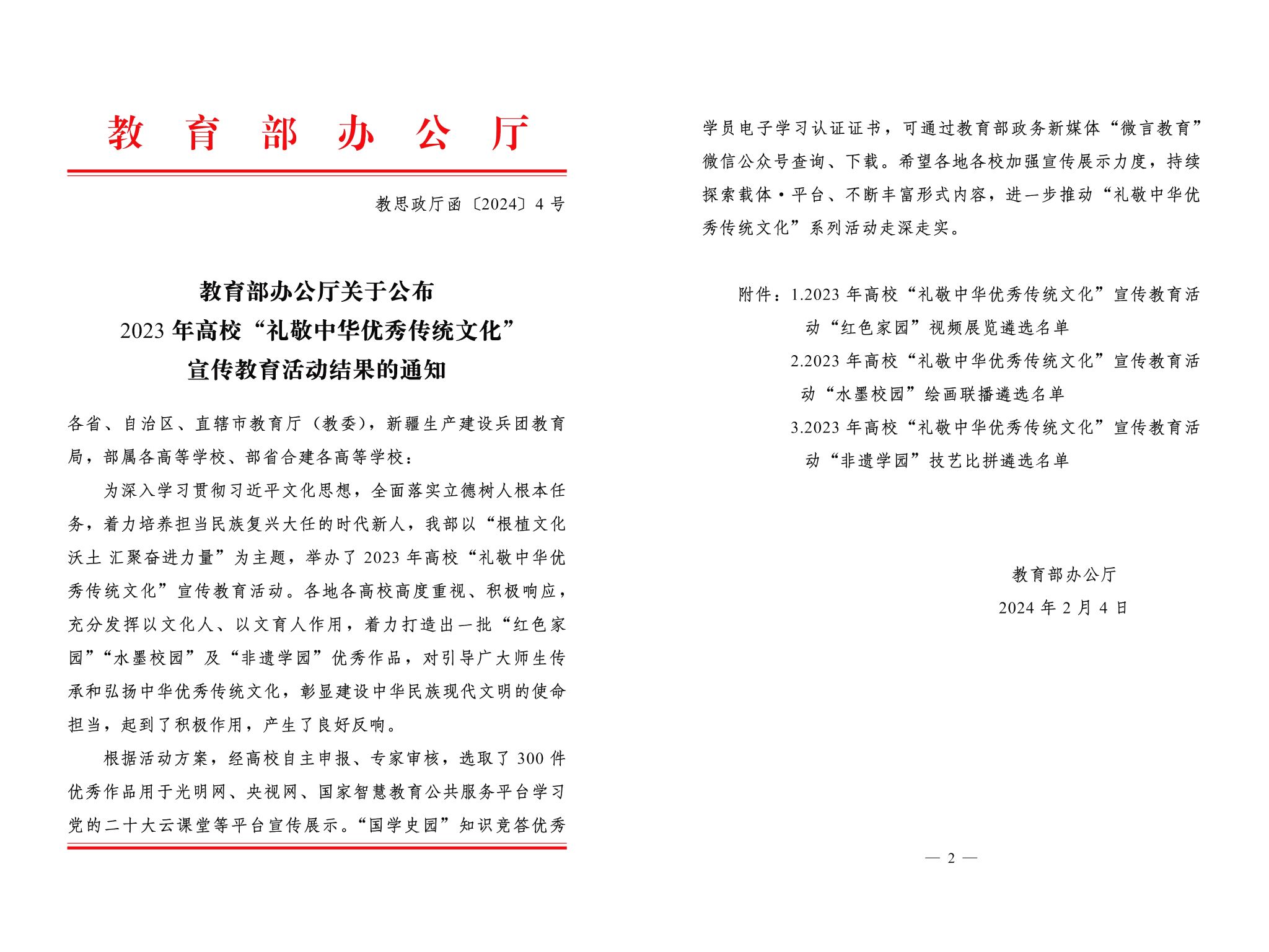 为深入学习贯彻习近平文化思想,全面落实立德树人根本任务,着力培养担当民族复兴大任的时代新人,学校高度重视文化建设工作,积极发挥以文化人、以文育人作用,坚持实施传统文化“六大行动”,切实以开展“礼敬中华优秀传统文化”系列活动为契机,把中华优秀传统文化融入教育教学和人才培养全过程,不断提升师生文化品位和人文素养,营造良好的校园文化氛围。