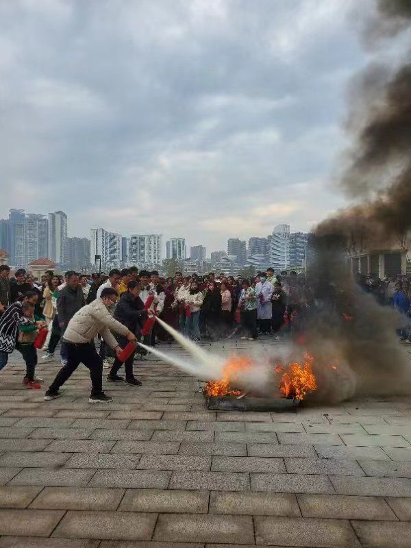 此次活动进行了灭火器的使用培训,参训人员进行了模拟逃生体验。