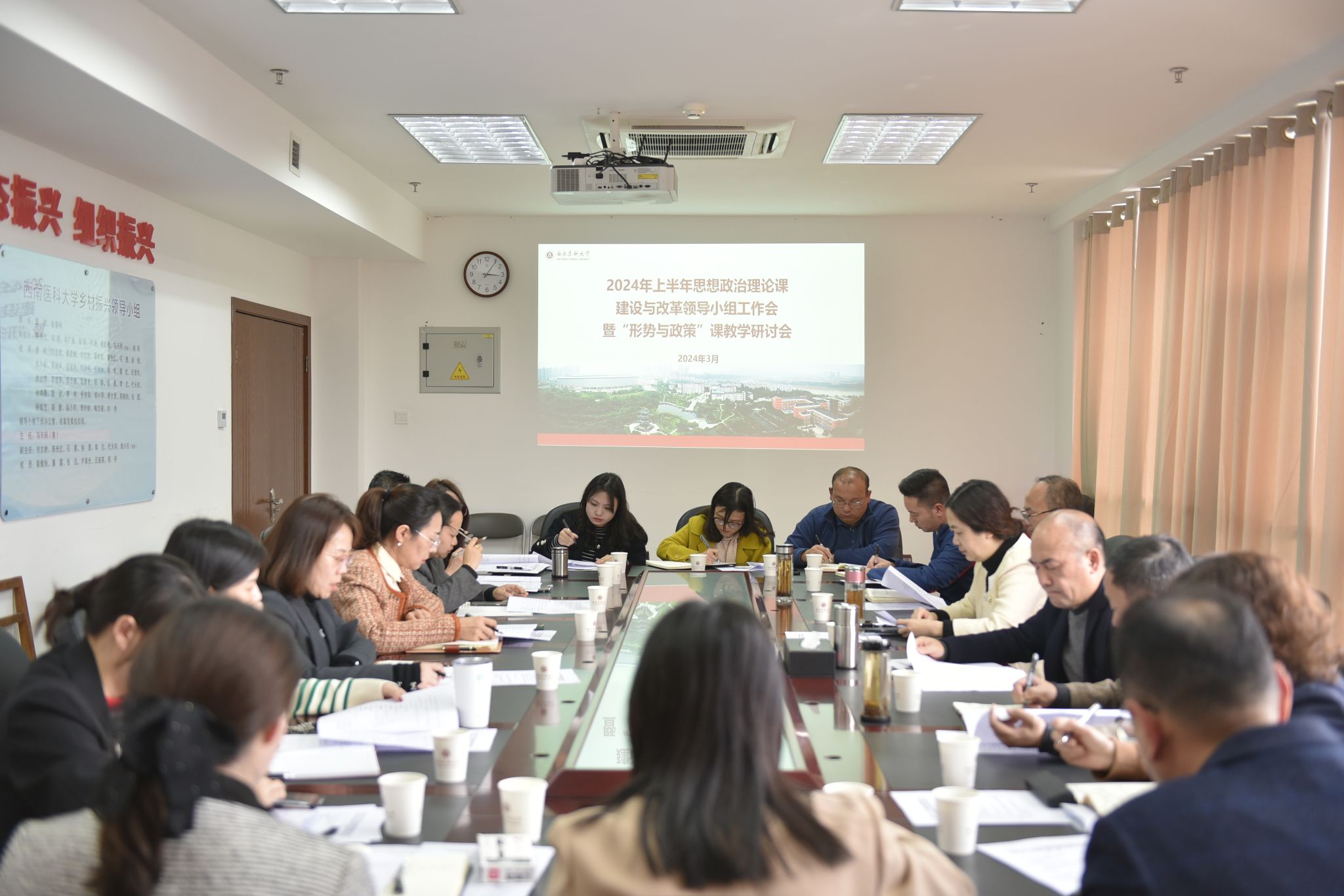 3月22日下午,学校思想政治理论课建设与改革领导小组工作会暨“形势与政策”课教学研讨会在城北校区德诚楼612会议室召开,重点研讨2023-2024学年第二学期“形势与政策”课程教学计划。学校党委副书记刘毅,思政课建设与改革领导小组成员单位主要负责人及部分二级院系负责人参加了会议。会议由党委副书记刘毅主持。