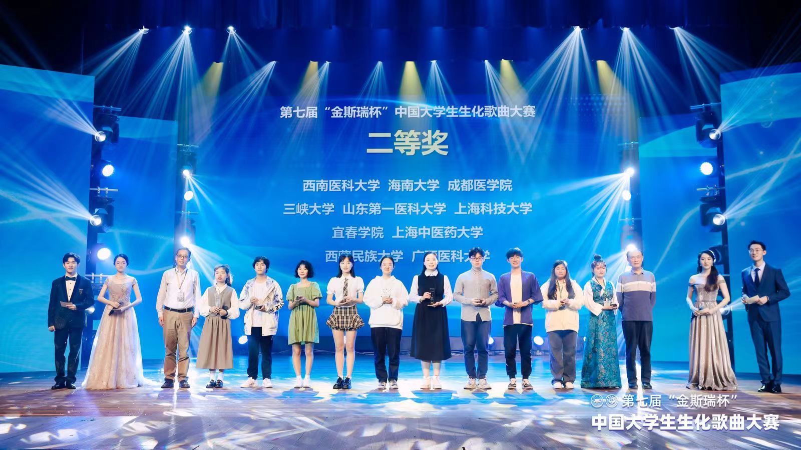 3月22-23日,由中国生物化学与分子生物学会教育专业分会主办的“第七届‘金斯瑞杯’中国大学生生化歌曲大赛”在中山大学举行,来自南京大学,中山大学等全国65所高校师生参加了此次比赛。我校2022级临床医学专业学生谢宇钒、高鑫远、李凌霄、许可仪在基础医学院生化教研室老师的带领下代表我校参加比赛,并在65支队伍中脱颖而出,获得二等奖的优异成绩。