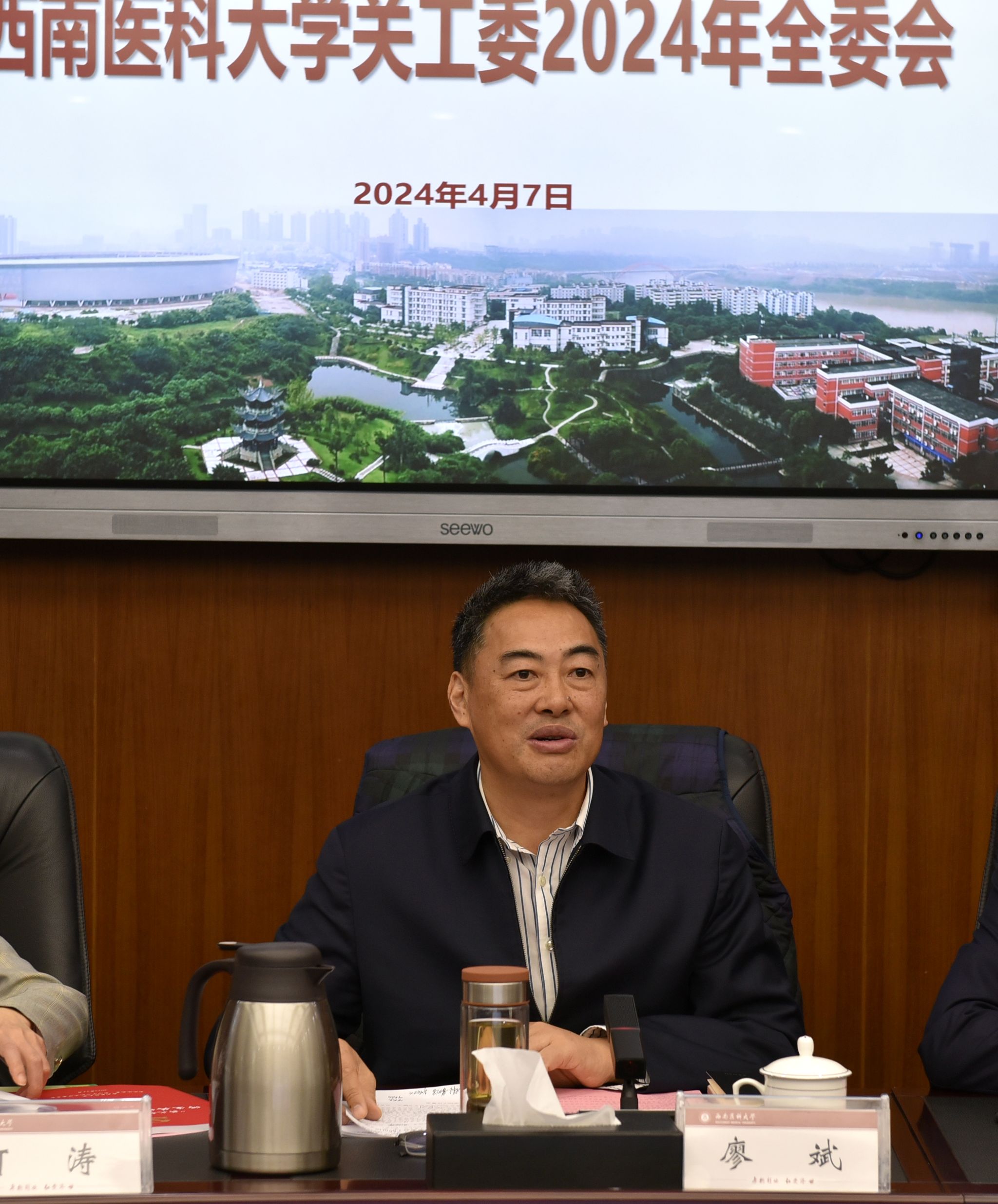 4月7日上午,学校关心下一代工作委员会2024年全委会在城北校区一会议室召开。党委书记、关工委主任廖斌,党委副书记、校长、关工委副主任张春祥,关工委全体委员共55人参会。会议由党委常委、副校长、关工委执行主任何涛主持。