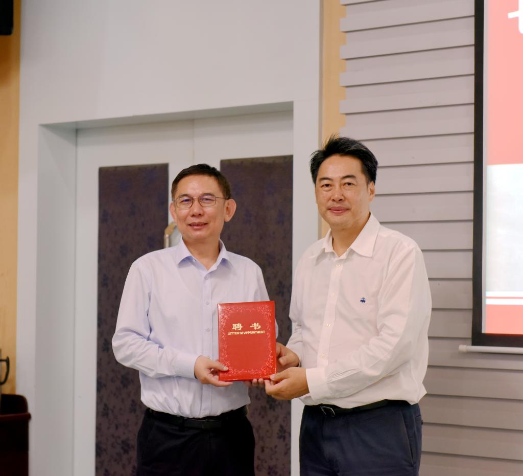 党委书记廖斌为赵万一颁发“西南医科大学法学院学术院长”聘书。