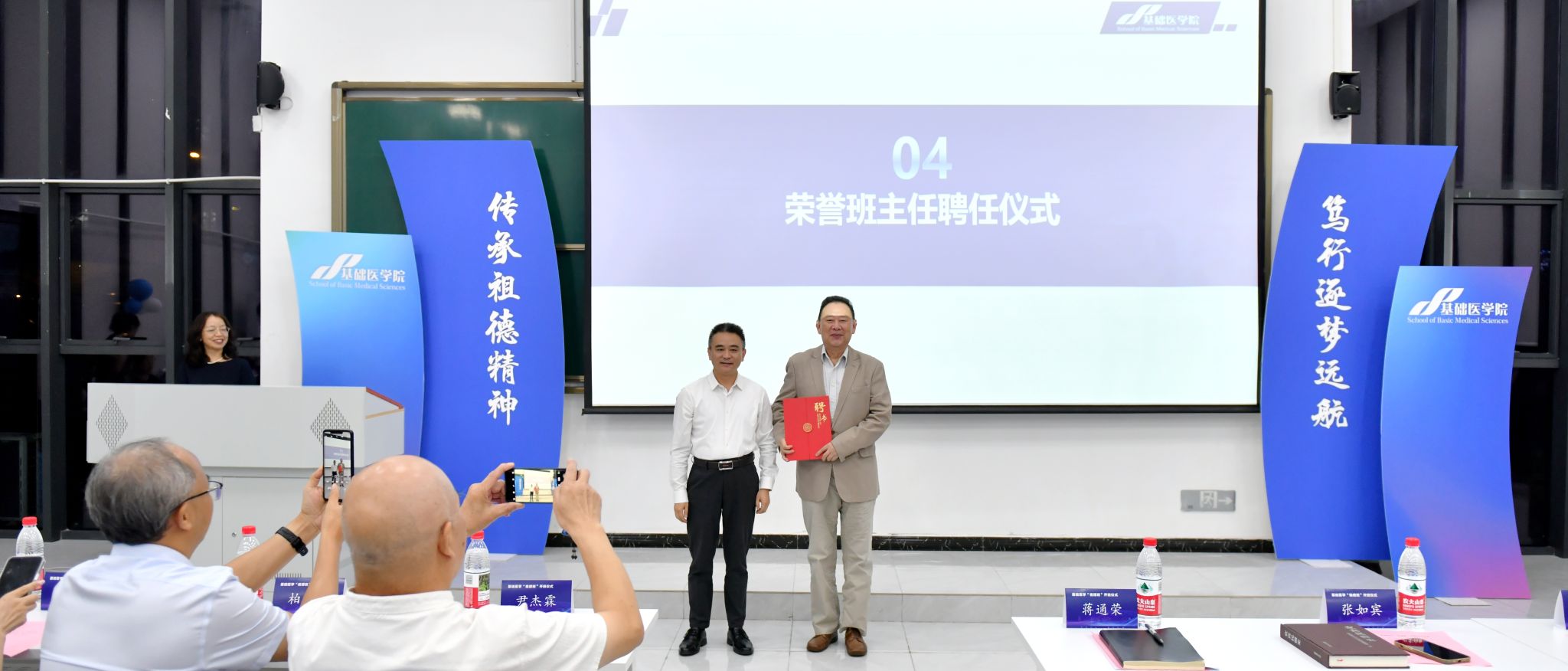 “基础研究虽无立竿见影之效,却能从根本上重塑医学发展格局,为守护人民健康筑牢源头支撑。”在首届基础医学“祖德班”开班仪式上,蒋通荣强调,“祖德班”汇聚了全校最优师资与科研资源,承载着培育基础医学拔尖人才的重任。他代表学校,向19名首届学子提出四点殷切希望,为他们的医学探索之路锚定方向:永葆好奇之心,敢于发问探索。保持“打破砂锅问到底”的韧劲,主动挑战生命科学前沿,将思辨、实验与临床观察转化为创新的起点。恪守严谨之风,坚守学术诚信。从第一堂课、第一次实验做起,尊重数据、规律与患者,以厚德与规范铸就学术之魂,产出可信可用可推广的成果。锤炼坚韧之志,勇于攀登高峰。以老一辈科技工作者为榜样,将善研的韧劲和善学的定力,转化为能攻关、能持久、能领跑的科研能力。涵养集体观念,携手协同共进。彼此成就、互学互鉴,涵养“博学慎思、团结向上”的班风,以个人成长助推集体,以集体力量促进个人进步。蒋通荣饱含期许的叮嘱,让在场学子备受鼓舞、倍感振奋。