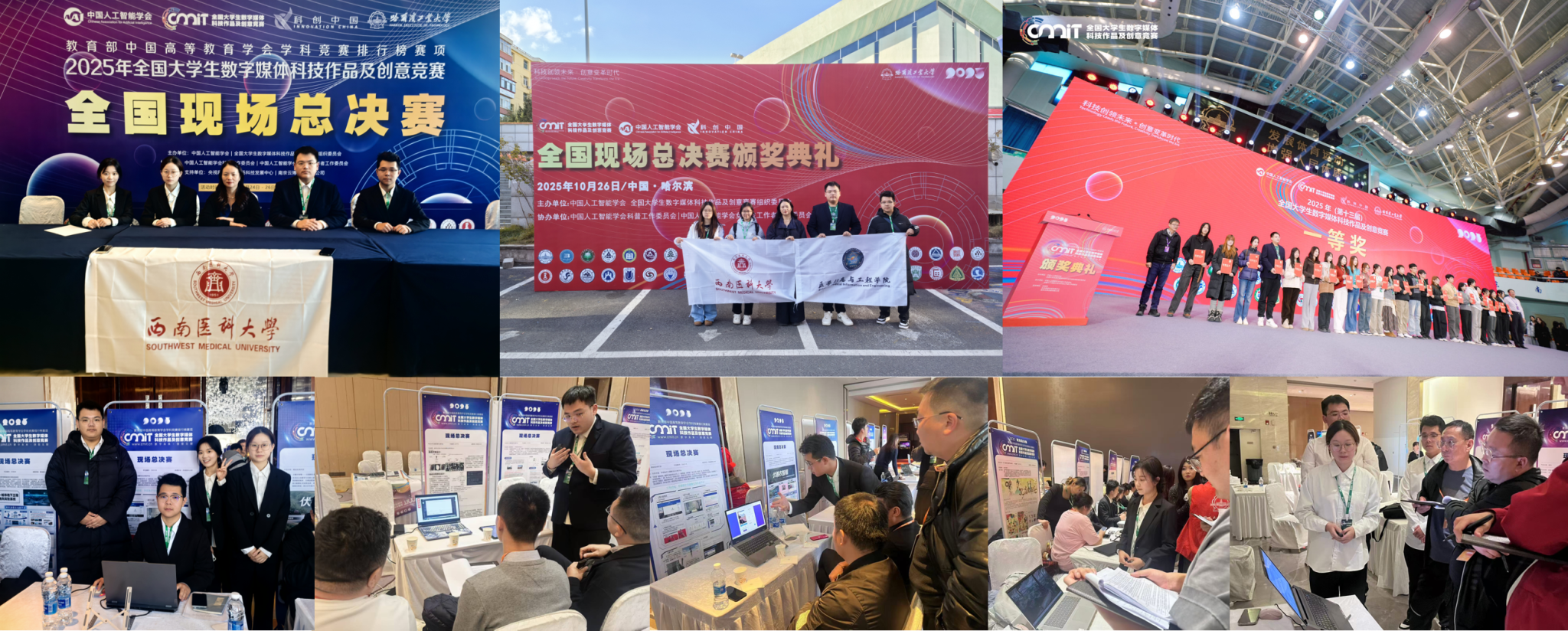 10月24日至26日,第十三届全国大学生数字媒体科技作品及创意竞赛(教育部A类竞赛)全国总决赛在哈尔滨隆重举行。本次大赛吸引了来自全国多所高校的优秀学生团队同台竞技。经过激烈角逐,西南医科大学荣获国赛一等奖1项、二等奖3项、三等奖6项的优异成绩,实现了我校在该项赛事中国赛一等奖零的突破。