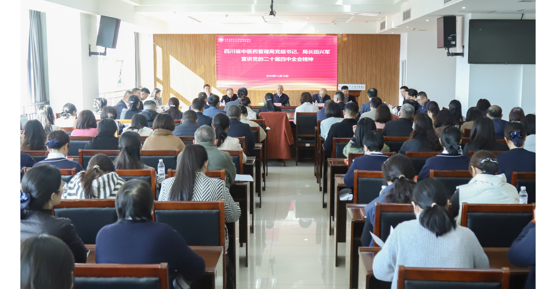 11月19日,四川省中医药局党组书记、局长田兴军到附属中医医院开展党的二十届四中全会精神宣讲。田兴军以《深学细悟全会精神 勇担时代发展使命,在新征程中彰显中医药新担当新作为》为题,对党的二十届四中全会进行了深入浅出的宣讲。泸州市副市长罗素平,泸州市卫健委主任、中医药管理局局长曾妍,西南医科大学党委常委、副校长江涌及附属中医医院院领导班子成员及科级干部、党支部书记代表等参加了宣讲会。