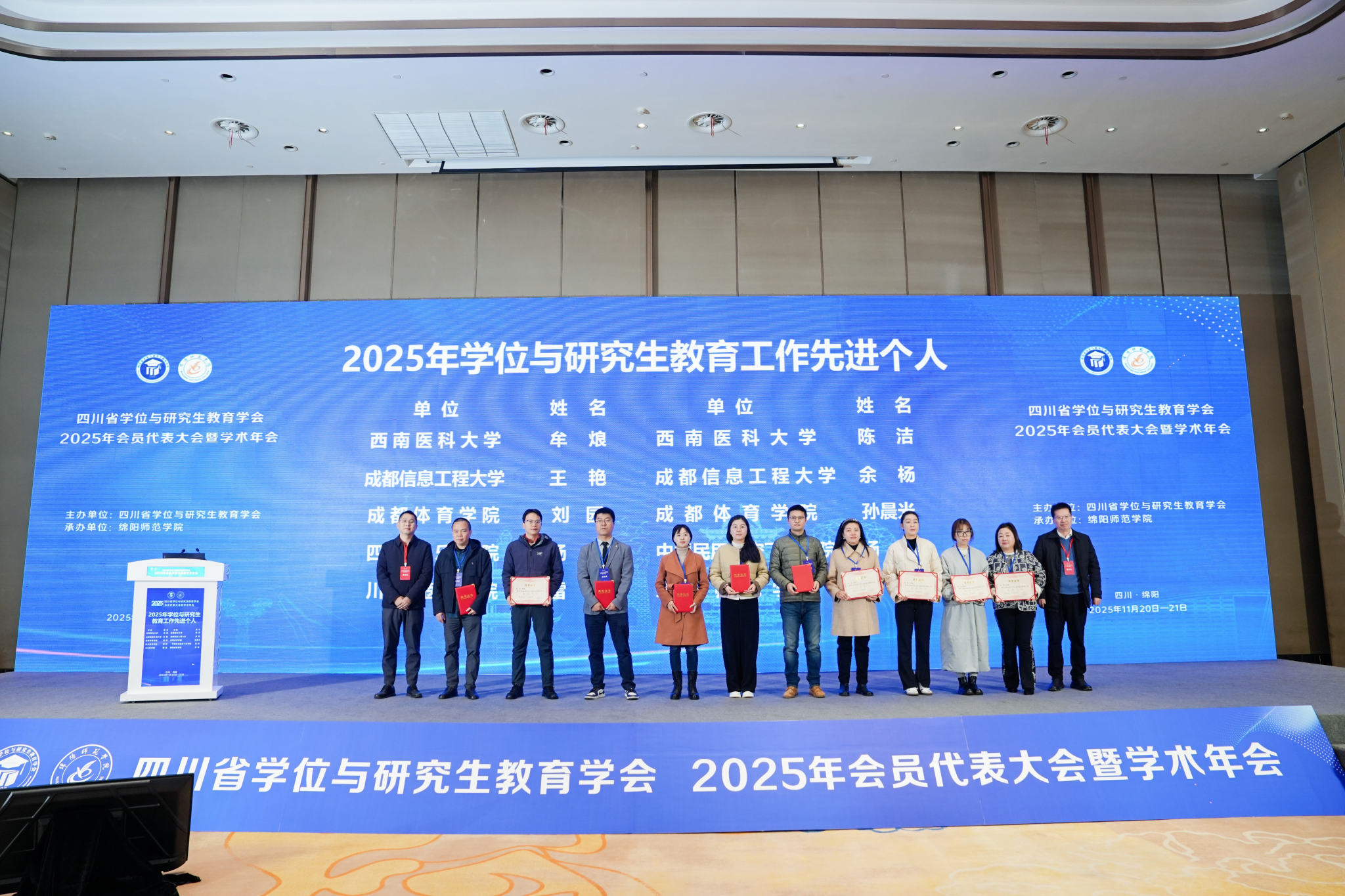 11月20日至22日,四川省学位与研究生教育学会2025年会员代表大会暨学术年会在绵阳召开。我校在此次会议中喜获多项荣誉,充分展现了学校在研究生教育与管理领域取得的显著成效。