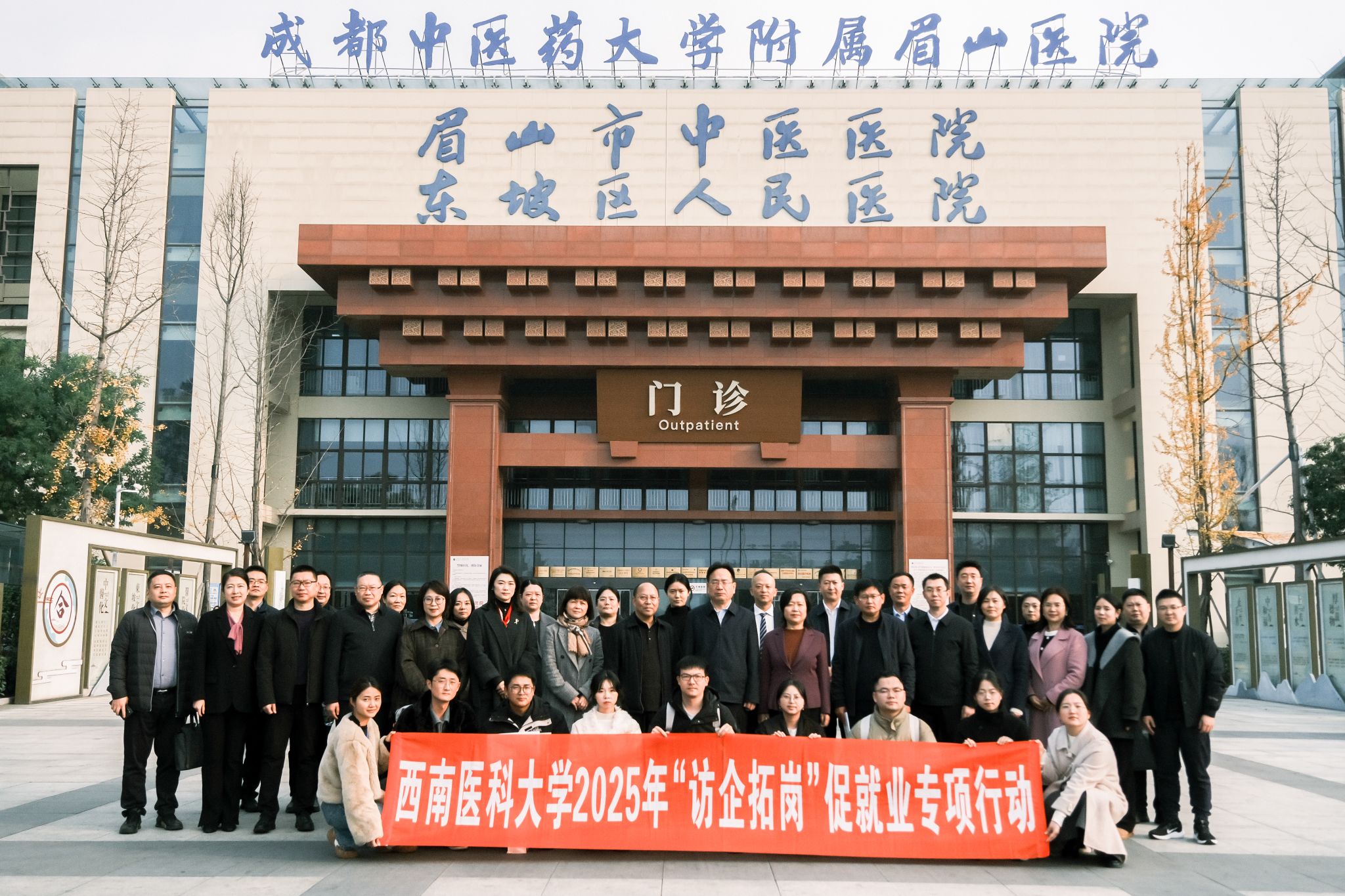 12月10日,学校党委书记张春祥带队赴眉山市开展“访企拓岗”专项行动。校地双方在眉山市中医医院举行座谈会。眉山市政府副市长戴林莉出席会议并讲话,眉山市卫生健康委主任蒋传德主持会议。天府新区眉山管委会、东坡区政府、洪雅县政府分管负责人,眉山各县(区)卫健部门及眉山市人民医院、市妇幼保健院等7家医院主要负责人,西南医科大学校友代表,学校党政办公室、招生就业处等职能部门领导及11名2026届硕士毕业生参加会议。