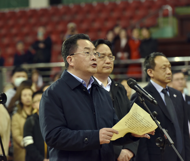 廖斌在主持欢迎仪式时谈到,战疫伊始,在党和国家的紧急征召下,学校两所附属医院医务人员传承红色基因,主动请战,来自呼吸、感染、重症、急诊等科室的69名白衣战士迅速集结,逆行出征,从大年初一开始,分三批驰援湖北省武汉市,义无反顾奔赴到战斗最前线,分别进驻了武汉红十字医院、武汉大学人民医院东院和武汉协和医院肿瘤医院,你们与本地和其他省市的医疗团队同舟共济,科学救治,同时间赛跑,与病魔较量,不计个人得失,践行救死扶伤的初心使命,全力奋战50余天,累计治愈出院确诊患者329名,其中重症患者224名,用实际行动筑起了护佑生命的钢铁长城。你们是泸州的英雄,今天,我们以最热烈的仪式欢迎你们回家,希望你们养精蓄锐后,以饱满的精神状态重回工作岗位,我们共同努力奋力夺取疫情防控和经济社会发展“双胜利”。