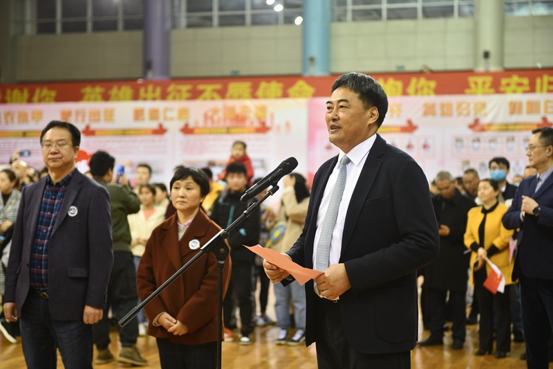 刘强在讲话中代表市委、市政府和市疫情防控指挥部,对医护人员胜利归来表示热烈欢迎;对他们在湖北抗疫工作中取得的重大胜利、作出的重大贡献,表示衷心感谢和崇高敬意。
