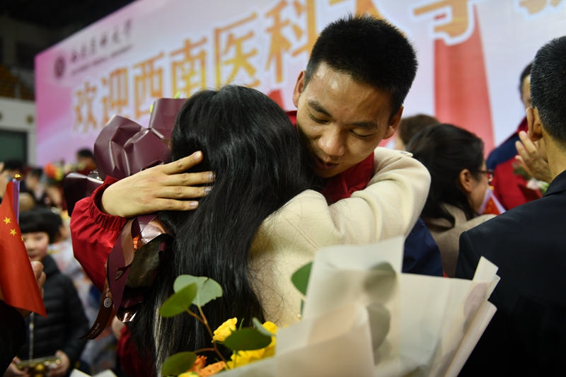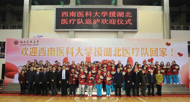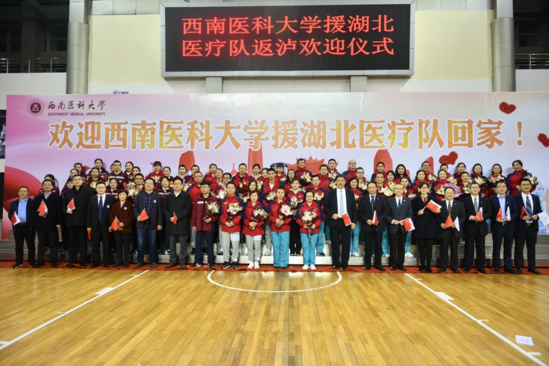白衣执甲,逆行出征;春暖花开,英雄归来。4月3日晚,西南医科大学援湖北第一批、第三批医疗队的55名医护人员凯旋回泸。在奥林匹克体育公园举行的欢迎仪式上,泸州市委书记、市疫情联防联控机制领导小组组长、市疫情防控指挥部指挥长刘强出席并讲话;泸州市委副书记、市疫情防控指挥部副指挥长鞠丽,泸州市委常委、宣传部部长刘云,泸州副市长马宗慧,学校党委书记、市疫情防控指挥部副指挥长、医疗组组长廖斌,学校主持全面行政工作副校长张春祥出席活动。欢迎仪式由廖斌主持。