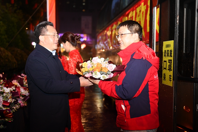 刘强指出,疫情发生后,西南医科大学援湖北医疗队闻令而动,义无反顾,最美逆行,分三批驰援湖北武汉。援湖北医疗队到达武汉后迅速投入战斗,积极发扬特别能吃苦、特别能战斗的优良作风,与时间赛跑、与病魔较量,始终奋战在疫情防控第一线,出色地完成了医疗救治任务。希望大家回家后好好休息,多陪家人,调整好状态,以崭新的精神面貌回归工作岗位,再立新功。