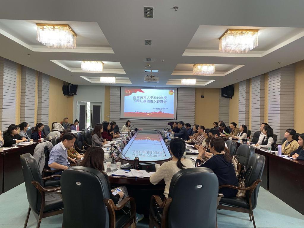 为进一步落实从严治团要求,在广大团员青年中形成学习先进、争做先锋的良好氛围,根据《西南医科大学2020年团内‘五四创先争优’评比表彰活动评选办法》相关要求,4月17日下午,校团委在城北校区三会议室召开了西南医科大学 2019 年度五四红旗团组织答辩会。党委副书记刘毅、宣传部•统战部部长柏珂、组织部副部长唐艳斌、学生工作部副部长谭群英、教务处副处长郑小莉、大学科技园区管理处副处长邓睿,各院系分管学生工作领导以及校团委全体成员、全体分团委、团总支书记参加了会议。