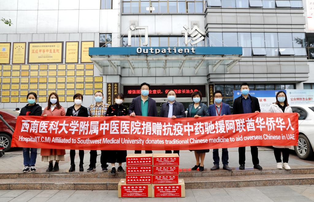 4月20日,西南医科大学附属中医医院举行了支援阿联酋华侨华人中药抗疫药品捐赠仪式,捐赠了一批由西南医科大学附属中医医院牵头研制的防治新冠肺炎“新冠0号”和“新冠1号”中药免煎颗粒。