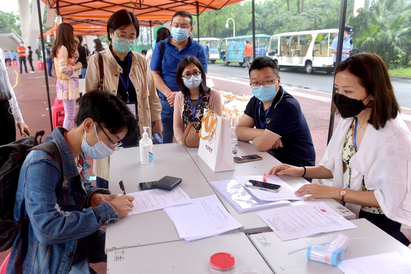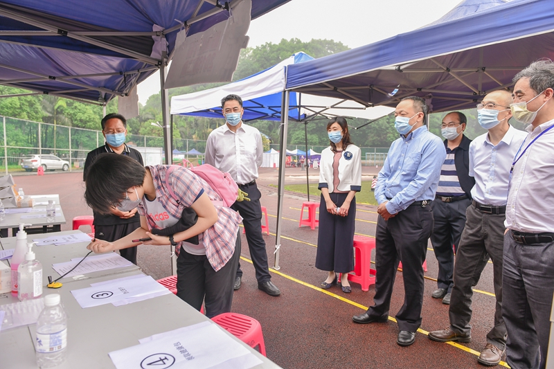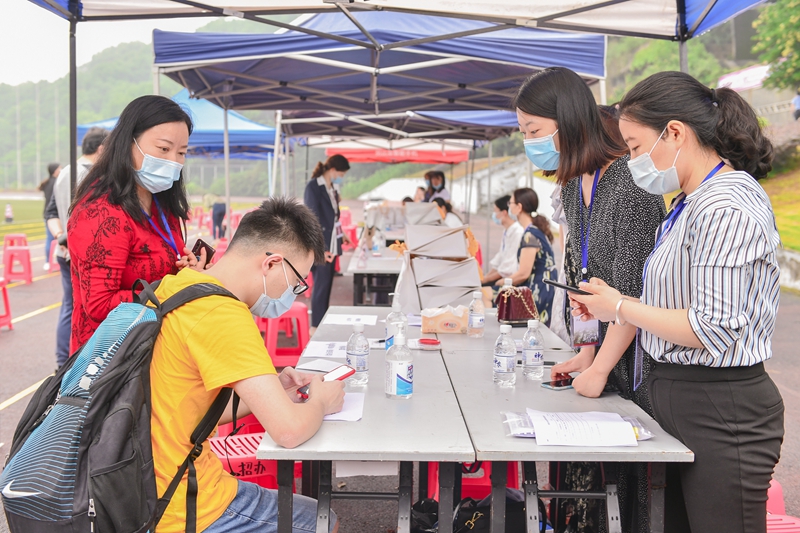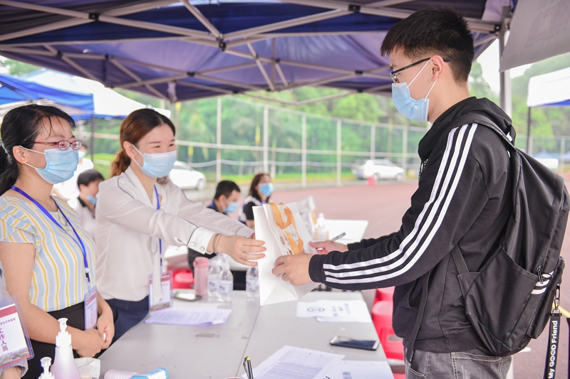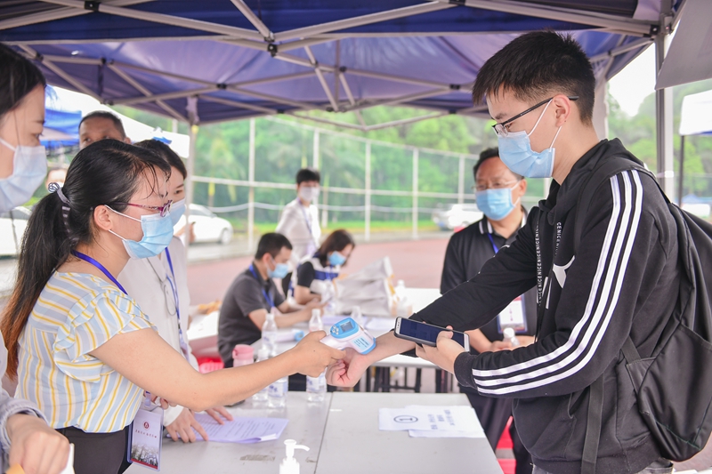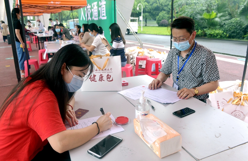5月16日8点,为期两天的第二批返校复课学生报到正式开始。学生在两校区报到场入口处下车,依次通过红外线测温区、院系报到点、扫码进入校区、扫码入住公寓,流程通畅快捷,一切井然有序。各院系组织有力,职能部门通力协作,学校领导亲切关怀,上下齐心协力,为返校返岗学生提供贴心周到的服务,让学生安心、让家长放心。截至5月17日晚12点,实际报到学生3851人,其中校本部1700人,基地医院2151人;因考研复试、工作面试等原因请假750人。