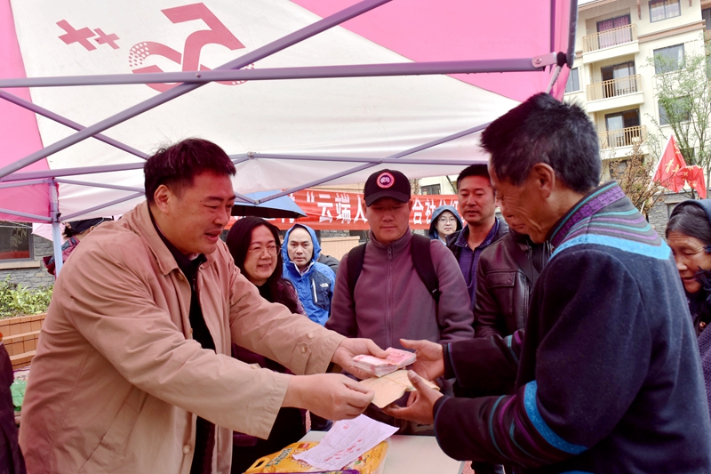 “恭喜你们啊,今年分红了。”走访最后一站,廖斌一行来到昭觉县易地扶贫搬迁安置点,此时天空下着小雨,但依然挡不住村民的热情,他们整齐的排着队,等待着领取属于自己的集体分红基金。在当天的集体经济分红仪式上,44户贫困户,每户分得现金1500元。