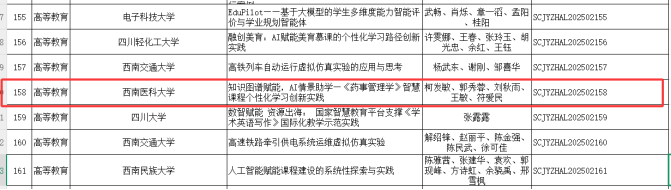 近日,四川省教育厅公布了2025年国家智慧教育平台、数字校园应用场景案例入选名单,我校两个案例入选优秀案例。我校《知识图谱赋能,AI情景助学—〈药事管理学〉智慧课程个性化学习创新实践》获评国家智慧教育平台应用优秀案例;《“虚实融合.文化浸润”基于VR的医学教育与校园文化协同育人实践》获评数字校园应用场景优秀案例。
