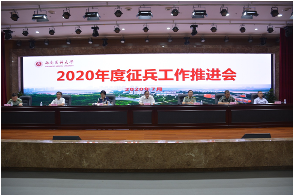 为贯彻落实省、市征兵工作推进会精神,全力做好疫情常态化防控背景下学校征兵工作,77日,学校2020年度征兵工作推进会在城北校区第一学术报告厅召开。党委副书记、纪委书记、征兵工作领导小组组长李尚志,泸州军分区副司令员汪国荣大校,龙马潭区人民武装部部长付毅上校、副部长宋科中校,学校征兵工作领导小组成员,各院(系)学生科科长、年级主任、辅导员参加了会议。会议由党委副书记、征兵工作领导小组副组长刘毅主持。