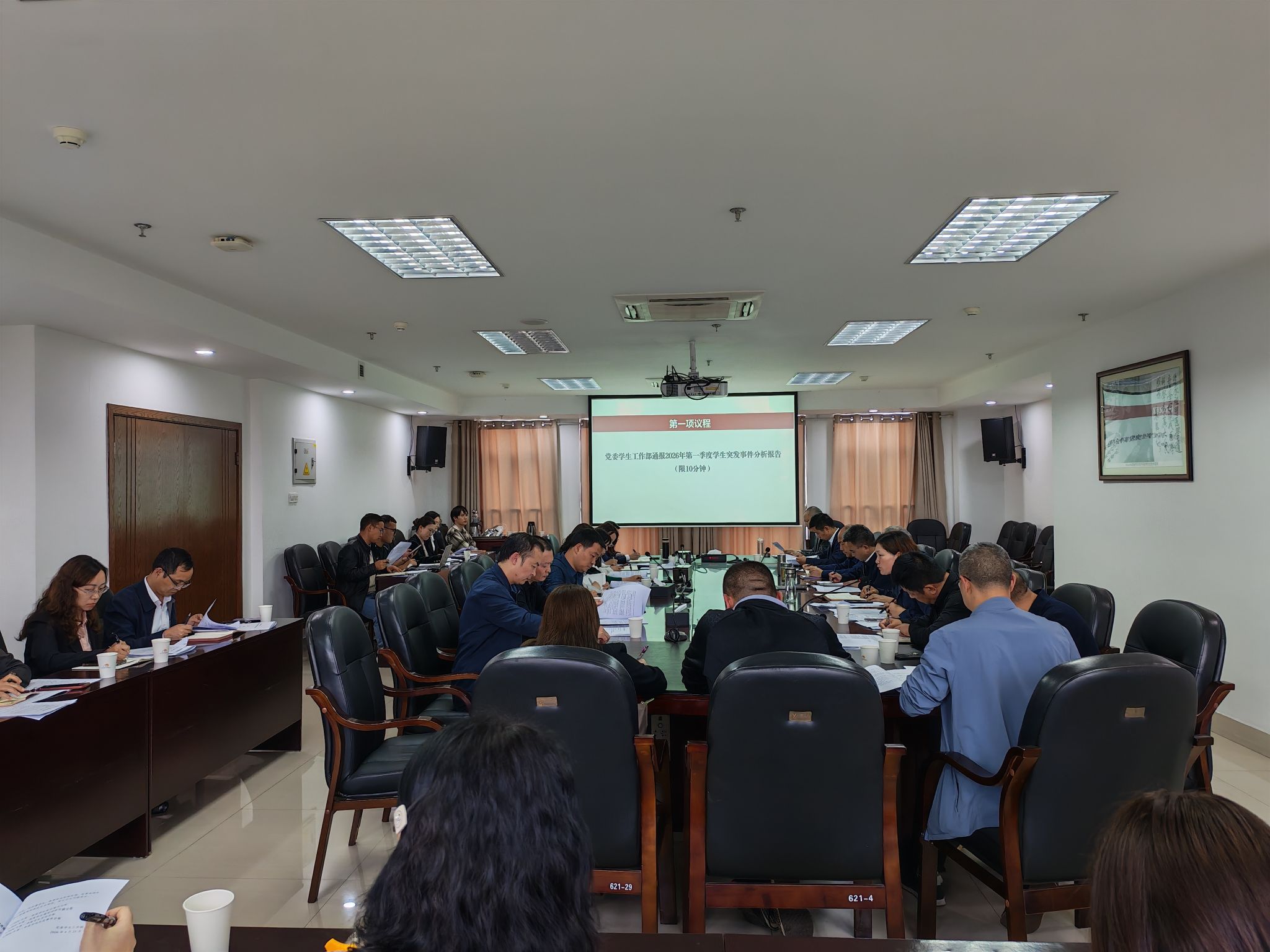 会上,学生工作部副部长范生根通报了2026年第一季度学生突发事件分析报告,对四类学生突发事件进行了系统梳理和原因剖析,提出了针对性的整改建议。各二级院系针对近期学生安全工作以及学生管理服务工作中的问题进行了集中反馈,各相关职能部门逐一进行回应,并就3月学生工作联席会反映问题的落实情况进行了汇报。