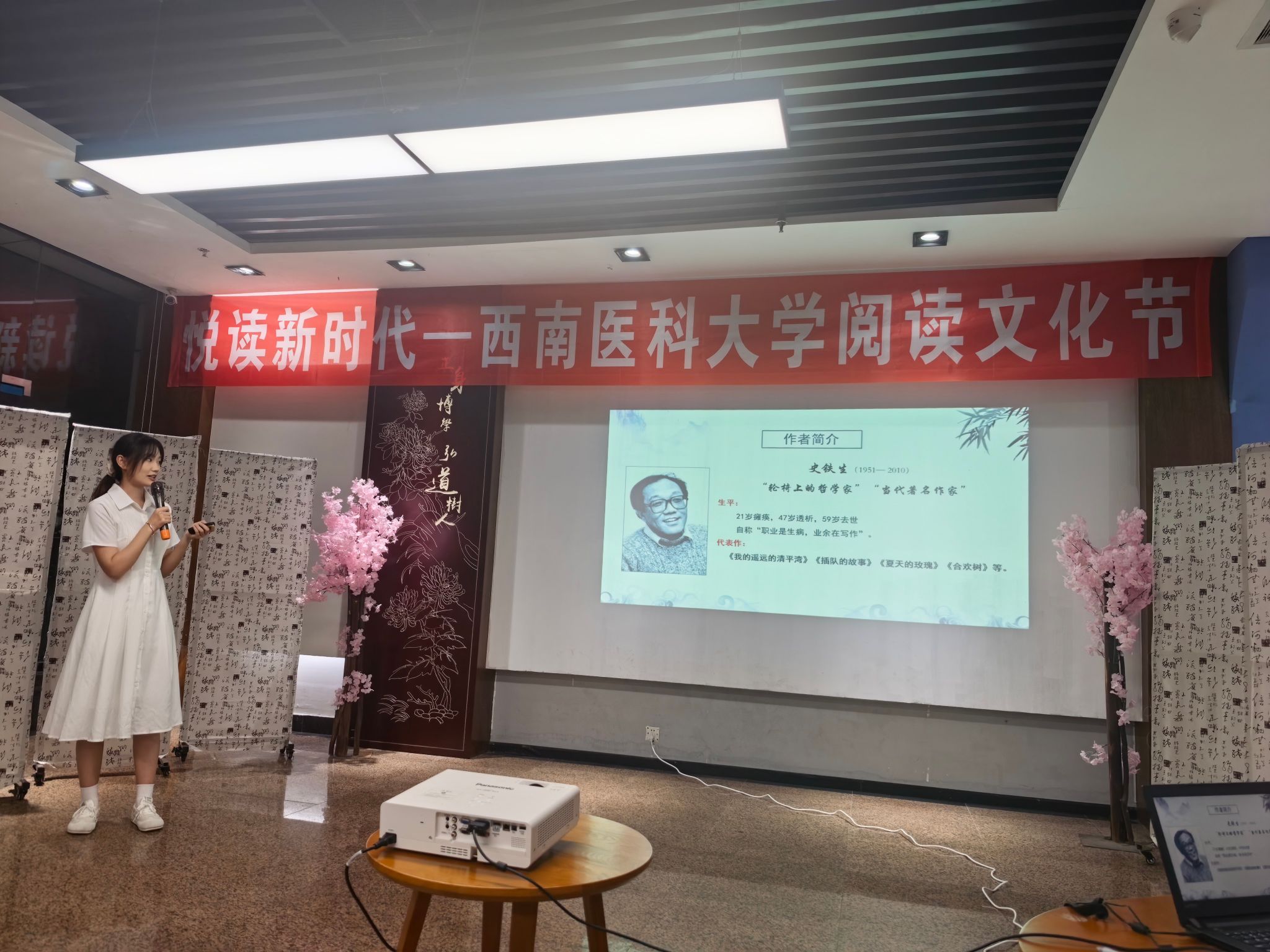 为深入贯彻落实立德树人根本任务,推动全民阅读进校园,涵养优良学风、厚植文化育人阵地,4月19日晚,由共青团西南医科大学委员会、图书馆主办,医学信息与工程学院、康复医学系承办的“屏间漫读·心流共享”读书分享大赛决赛,在逸夫图书馆城市书房举行。图书馆馆长冯勤、人文与管理学院人文教研部主任姚洪伟、发展规划与“双一流”建设办公室综合科科长何双、读者服务中心主任胡超、药学院教师刘剑担任评委。