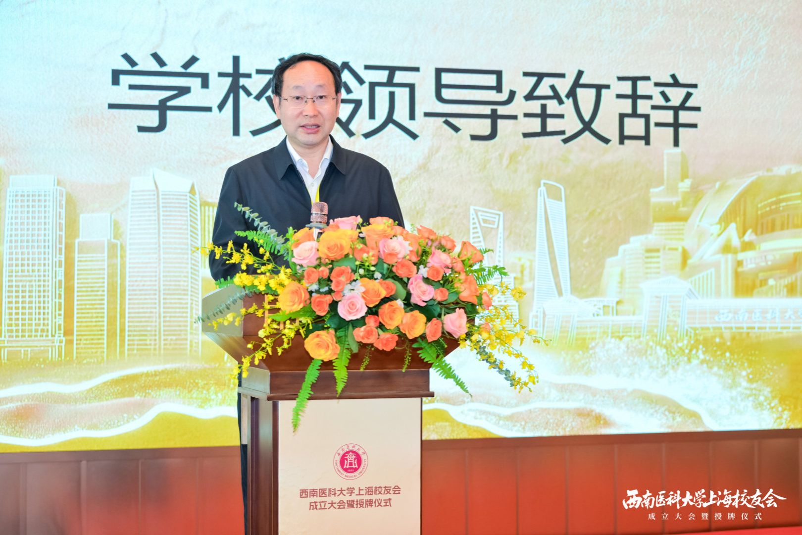 西南医科大学原党委书记、校友会会长廖斌通过视频表达了对上海校友联络处正式成立的祝福与希望。一是希望当好“暖心人”,把这个家办得有温度、有凝聚力,让大家在上海,也能感受到“家”的温暖。二是希望当好“领路人”,带领各位校友传承母校精神、践行医者使命,展现西南医大人的责任与担当。三是希望当好“联络人”,架好母校与上海、校友与母校的桥梁,助力母校建设特色鲜明的西部高水平医科大学。