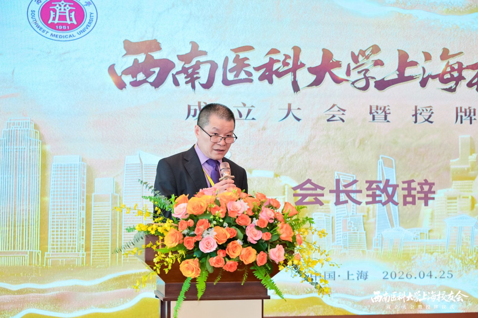 4月25日,四川省西南医科大学校友会上海联络处成立大会暨授牌仪式在上海举行。学校党委常委、副校长、学校校友工作领导组常务副组长聂敏海出席大会,与上海各行业80余名校友以及来自浙江、福建、湖南、成都等地校友代表欢聚一堂,共同见证这一历史时刻,共叙校友情、共话母校恩、共商发展计。