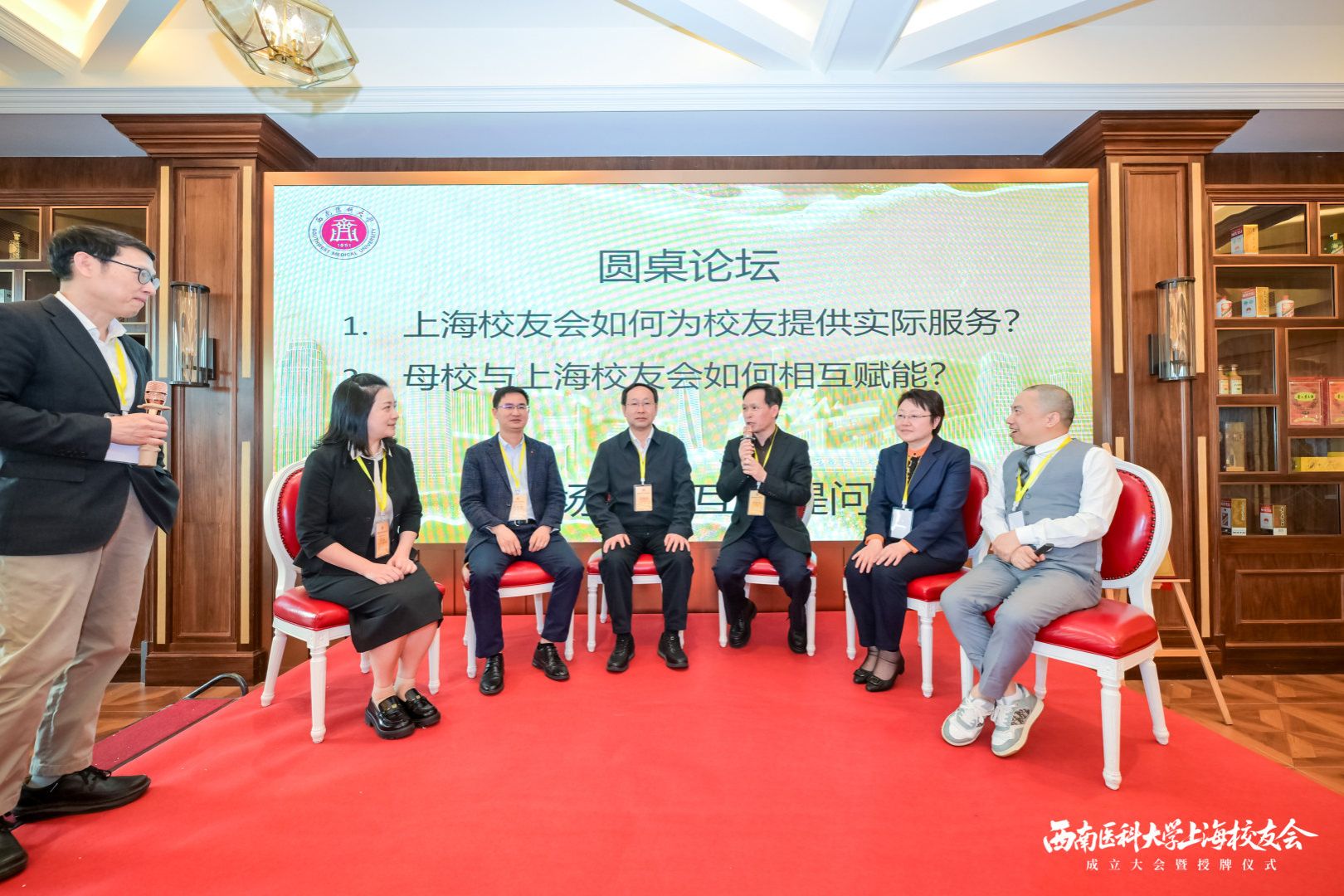 成立仪式后,还举行了圆桌论坛,论坛由上海校友联络处执行会长谢斌主持,围绕“上海校友联络处如何服务校友”“母校与上海校友联络处如何相互赋能”等议题深入交流,现场互动热烈、氛围浓厚。与会校友纷纷表示,将以校友联络处为纽带,凝心聚力、互通互助,在各自医疗岗位上彰显西南医大人担当与风采。最后,进行了丰富多彩的文艺活动。74级校友刘成文朗诵了其创作的《沁园春•贺西南医科大学上海校友联络处成立》(全文附后),潘力、黄骥、万丽虹等校友唱歌助兴。