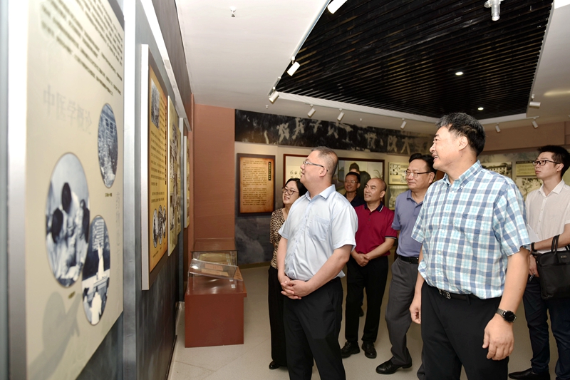 梁磊一行在学校党委书记廖斌,主持行政全面工作副校长张春祥,党委副书记、工会主席刘毅的陪同下考察了教育部重点实验室——医学电生理实验室和心血管医学研究所、附属医院康健中心院区、学校校史展览馆及附属中医医院城北院区,详细了解了学校党的建设、基层党组织和党员作用发挥、人才队伍建设、博士点申报和双一流建设等有关情况。