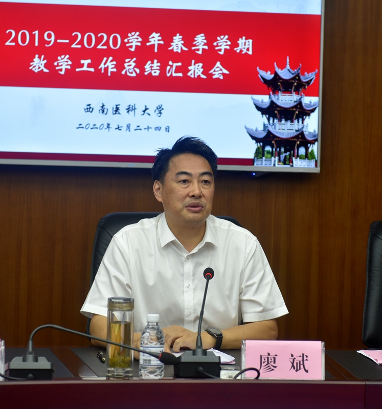 学校主持行政全面工作副校长张春祥讲话。他对过去5个月里,西南医大人保持奋进的姿态,用严谨的态度、勤奋的作风、求实的精神、创新的意识,成功探索的在线教学实践给予了充分肯定,并从持续转变办学理念,持续提升教学体系的调整能力,持续转变学习模式、提升学习自主性和成效,持续创新教学模式、大力发展智慧教育等五个方面,对后疫情时代教育范式的转变提供的新机遇进行了展望。