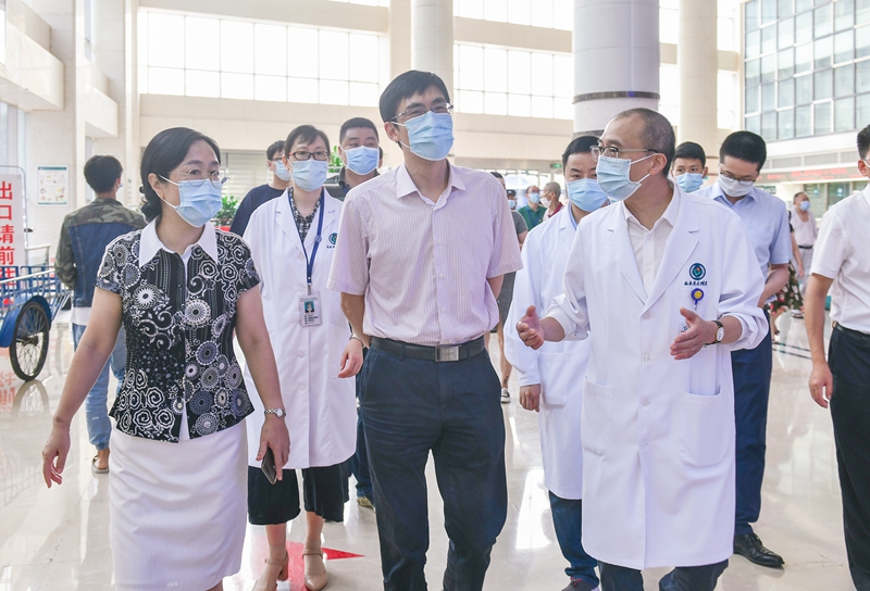 723日上午,省委“两新”组织工委专职副书记尹显耀、市委组织部副部长张国华一行到附属医院开展公立医院党建工作专题调研。学校党委副书记兼工会主席刘毅、组织部部长冯天明陪同调研。附属医院党委书记惠曦、党委副书记兼纪委书记曾宪利、副院长徐勇、江涌等陪同。
