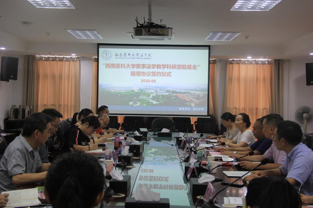 8月6日下午,我校教育发展基金会与重庆市启富企业管理咨询有限责任公司关于“西南医科大学医事法学教学科研激励基金”捐赠协议签约仪式在德诚楼621会议室举行。重庆市启富企业管理咨询有限责任公司无偿捐赠人民币50万元在西南医科大学设立“医事法学教学科研激励基金”,该基金纳入西南医科大学教育发展基金会统一管理,作为“西南医科大学医事法学教学科研激励基金”项目,按照捐赠方意愿专款专用。