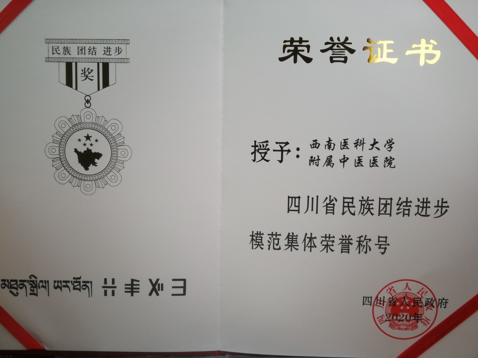 近日,四川省人民政府发布了《关于表彰四川省民族团结进步模范集体和模范个人的决定》,西南医科大学附属中医医院荣获“四川省民族团结进步模范集体”荣誉称号。