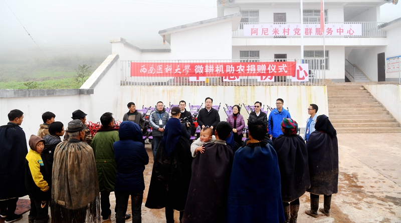张春祥一行走进扶贫车间和黄金茶坊,详细询问产业发展和产品生产销售情况。他强调,要大力发展特色扶贫产业,积极壮大集体经济,创造更多就业机会,帮助当地群众既增收又致富。在黄芩种植基地,张春祥代表学校向村集体捐赠了20台微耕机,让参与药材种植的老百姓免费使用,他希望大家保管好、维护好、使用好微耕机,让微耕机发挥最大效益,要抛弃等靠要的思想,辛勤工作,用勤劳的双手创造更加美好的明天;希望帮扶干部充分发挥学校的科研优势,加强种植技术培训提升科学种植水平,不断提高黄芩种植的产量和品质,让老百姓在学校对口帮扶中受益。