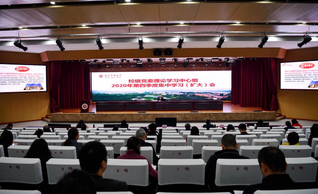 11月26日下午,西南医科大学组织召开校级党委理论学习中心组集中学习会(扩大),认真学习贯彻党的十九届五中全会精神,学校党委书记廖斌以迈向“十四五”为题作党的十九届五中全会精神宣讲。