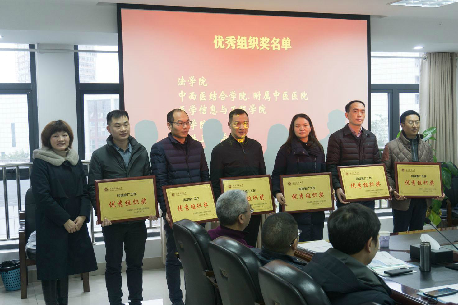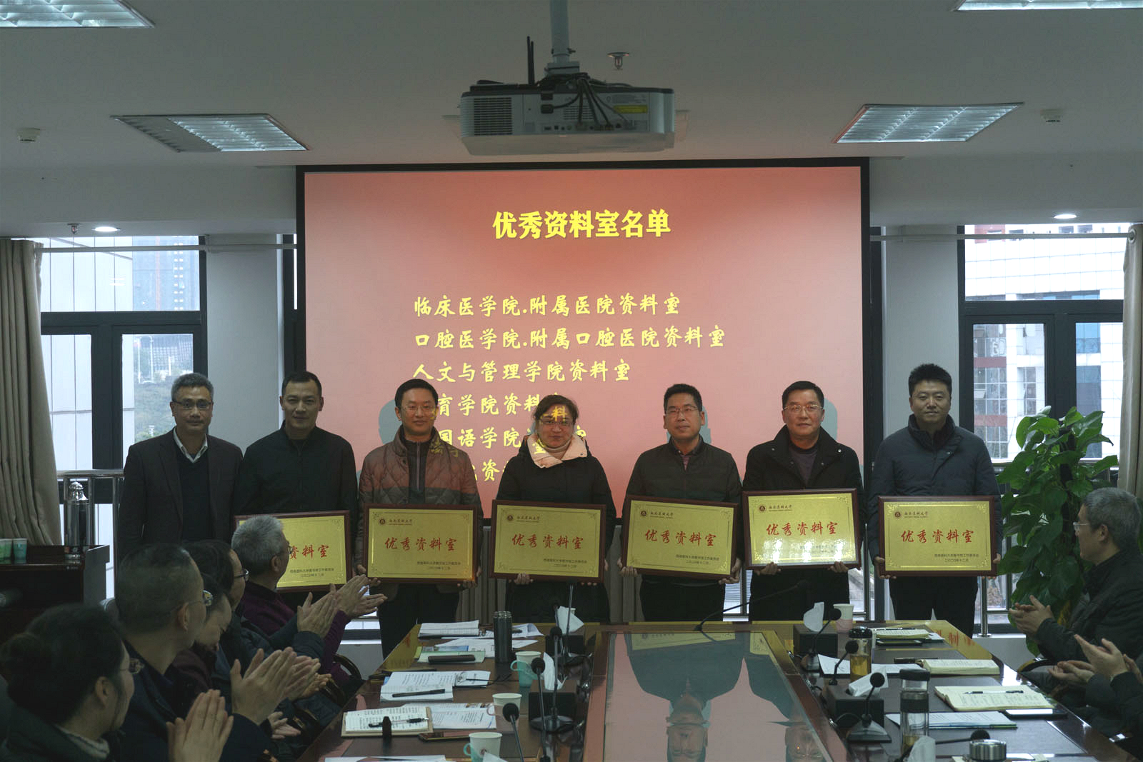 学校文献资源建设专家组副组长、图书馆副馆长冯勤宣读《西南医科大学图书馆工作委员会关于表彰2020年度“优秀组织奖”“优秀资料室”的决定》,学校图书馆工作委员会委员、学生工作部部长谭群英,王钦分别为获得表彰的集体进行了颁奖。