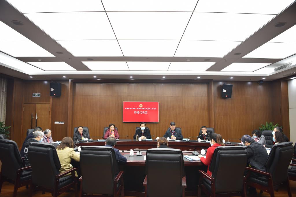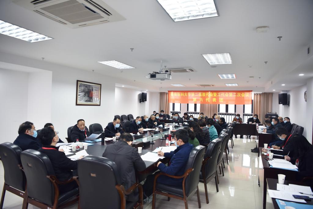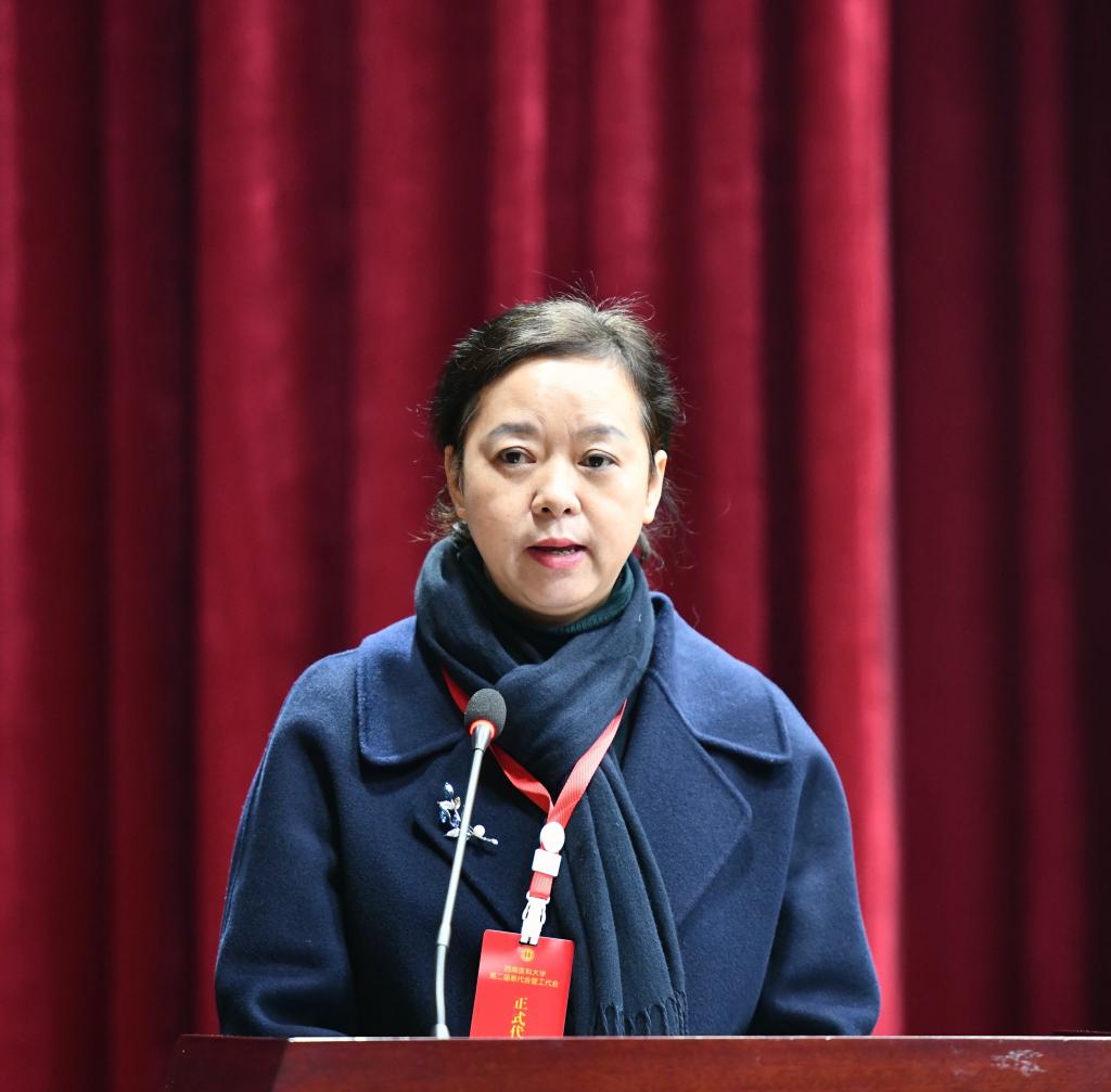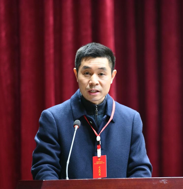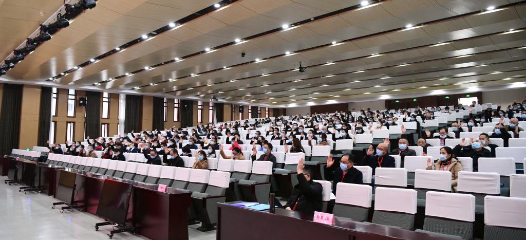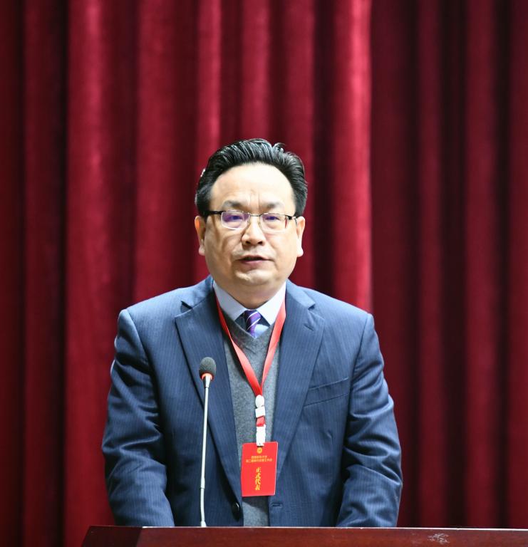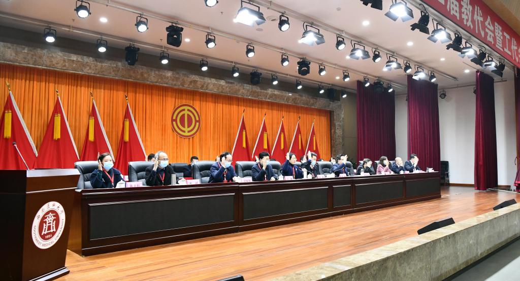 工会副主席陈先红以《戮力同心谋发展 乘势而上开新局 为全面建成特色鲜明的西部高水平医科大学努力奋斗》为题向大会作教代会、工会工作报告。