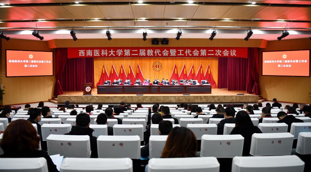 2月2日上午,西南医科大学第二届教代会暨工代会第二次会议第一次全体会议在城北校区德诚楼学术报告厅召开。校领导廖斌、张春祥、刘毅、刘广益、彭钢、何涛、聂敏海,正式代表、特邀代表、列席代表等250余人,齐聚一堂,共谋学校改革发展大计。
