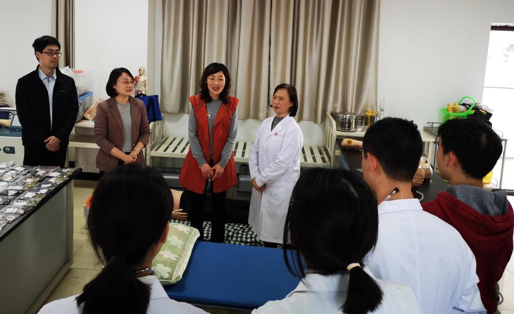 224日,党委常委、副校长何涛,教务处处长郑小莉、副处长刘力一行3人在中西医结合学院副院长徐厚平等陪同下看望备战第十届中国大学生医学技术技能大赛的学生,并和同学进行亲切交流。