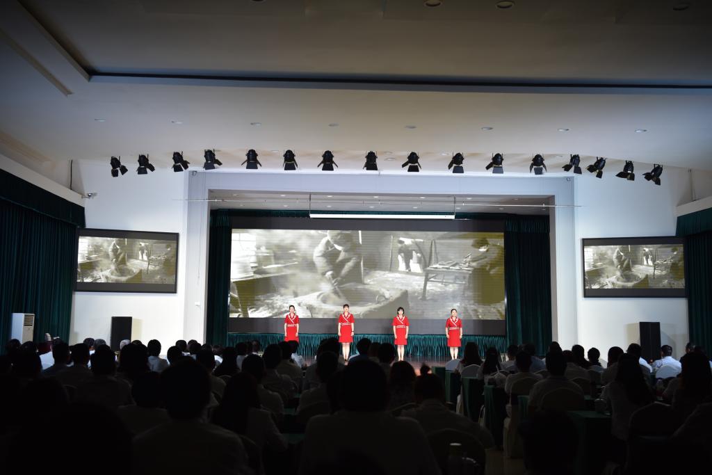 《英雄•丰碑》是以“两弹一星”创业历史为主要背景,以朱光亚、钱学森、王淦昌、邓稼先、郭永怀和孙家栋为主要历史人物,通过宣讲、情景再现和表演等艺术形式,集中表现老一辈科学家舍生忘死、无私奉献的家国情怀,热情讴歌那一代人“献了青春献终身,献了终身献子孙”的豪迈激情,生动诠释了“两弹一星”精神内涵。该情景剧分为“归心似箭”“筚路蓝缕”“碧血丹青”“扶摇九天”四个篇章。通过跌宕起伏的剧情展演,形象鲜明生动的人物展示,细腻真挚的情感表现,读书班全体成员在朗诵者和表演者独具匠心的倾情演绎下,大受感动,全场抽泣声不断,引发强烈的情感共鸣,情不自禁的站起来与表演者共同激情唱起了《歌唱祖国》。