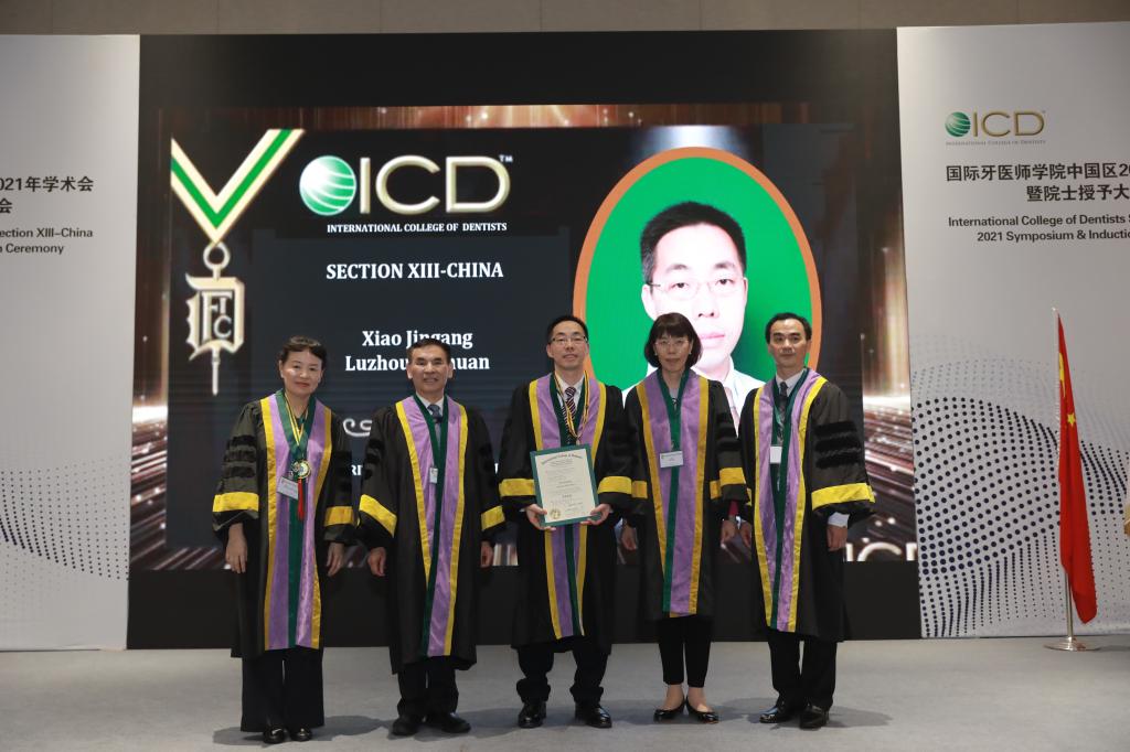 近日,国际牙医师学院中国区2021年学术会暨院士授予大会(International College of Dentists ICD Section XIII-China 2021 Annual Symposium & Induction Ceremony)在四川成都举行。口腔医学院·附属口腔医院院长、教授肖金刚博士被授予“2021年度ICD中国区院士”殊荣。