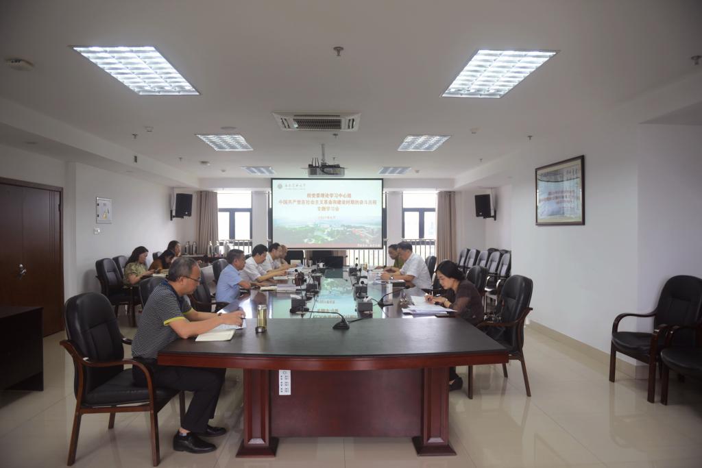 6月7日,学校党委理论学习中心组在德诚楼621会议室召开专题学习会,集中学习社会主义革命和建设时期党的历史。中心组组长、党委书记廖斌主持学习会,领学社会主义革命和建设时期的重大历史事件并分享学习心得。