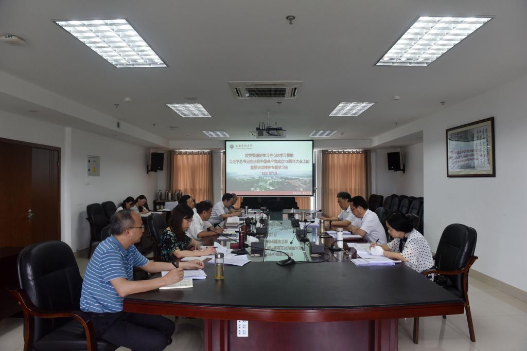 7月12日上午,学校党委理论学习中心组在德诚楼621会议室召开专题学习会,集中学习研讨习近平总书记在庆祝中国共产党成立100周年大会上的重要讲话精神。中心组组长、党委书记廖斌主持学习会。
