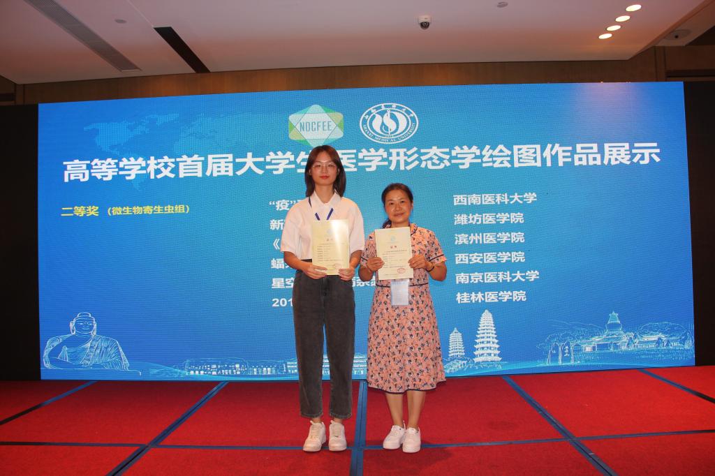 7月28日,高等学校首届大学生医学形态学绘图大赛在山西太原举行。本次大赛,我校《“疫”不容辞》《华支睾吸虫生活史》2幅作品分别获得二等奖和三等奖。《“疫”不容辞》是基础医学院病原生物学教研室陈文碧老师指导,2019级口腔医学专业熊蕾同学创作;《华支睾吸虫生活史》是基础医学院病原生物学教研室陈文碧、佘俊萍、王光西老师指导,2017级临床医学专业张淇同学创作的。两幅作品以专业性为核心,构图精巧、联系社会、恰当思政,兼具科学性和艺术性,在众多参赛作品中表现出色,分别获奖,充分展现了我校学子的风采。