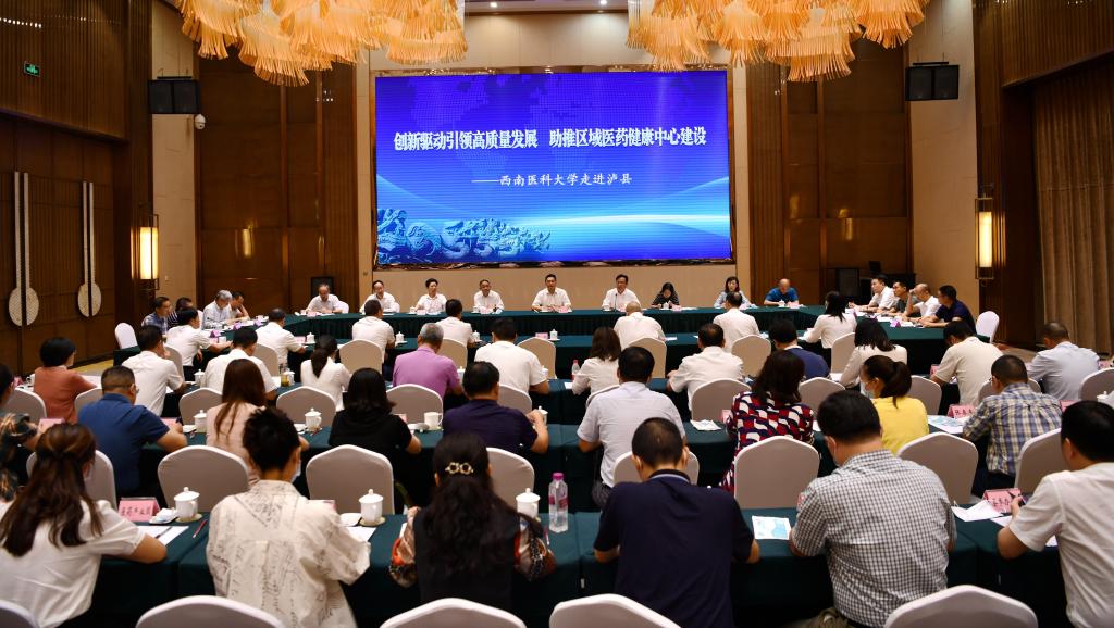 参观结束后,举行以“创新驱动发展引领高质量发展 助推区域医药健康中心建设——西南医科大学走进泸县”为题的座谈会。座谈会由学校主持行政全面工作副校长张春祥主持。