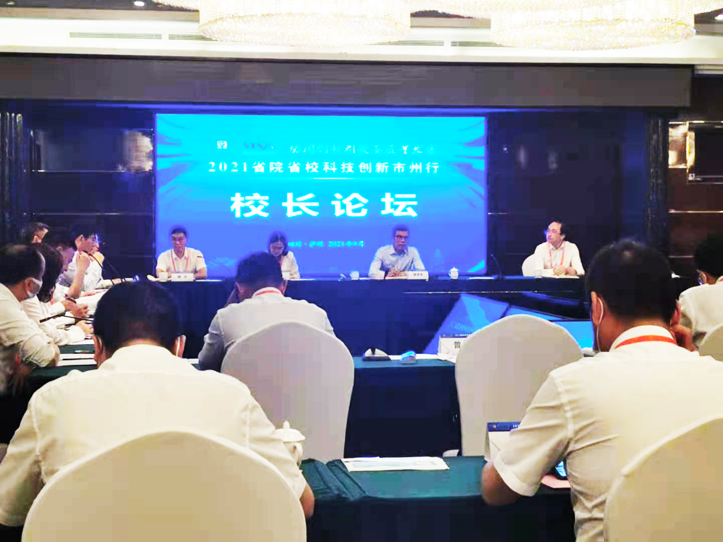 9月28日,四川省科学技术厅与泸州市人民政府在四川巨洋国际大饭店联合举办“2021•省院省校科技创新泸州行”。本次活动吸引了来自清华大学、浙江大学、重庆大学、西南大学等20多所知名院校的专家学者,以及21个市州科技主管部门主要负责人和数10家企业代表等近200人参加。学校主持行政全面工作副校长张春祥、发展规划处处长赵领、科技处处长周翔宇参加会议。