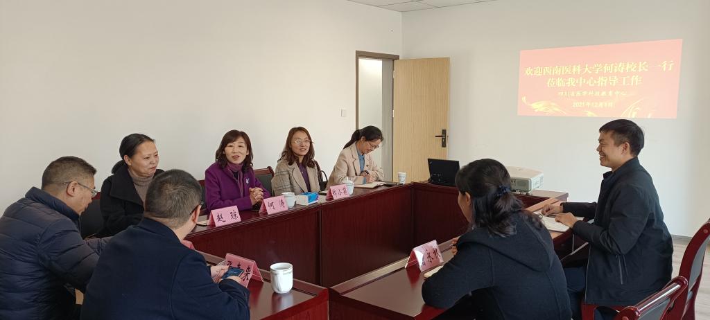 日前,学校党委常委、副校长何涛一行7人赴四川省医学科技教育中心就医学教育、医学科研等与中心主任毕明帅、副主任曾永秋进行交流座谈。学校教务处、教育评价与教师发展中心、继续教育学院相关负责人参加了座谈。
