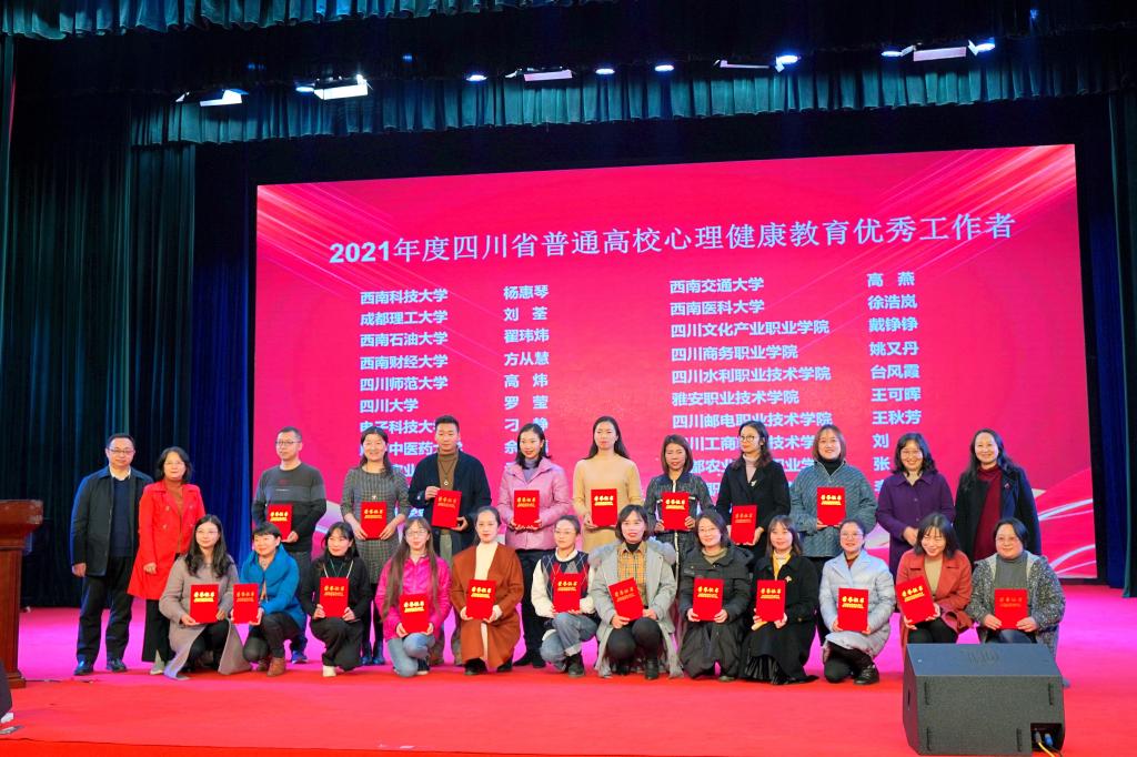 四川省委教育工委副书记刘力云出席年会并讲话。专委会对四川省高校大学生心理健康教育工作进行了年度总结和表彰。我校获评2021年四川省心理教育专委会年会优秀组织奖,我校教师徐浩岚获评2021年度四川省普通高校心理健康教育优秀工作者,冯淑丹、唐诗绮、杨贵英等撰写的《团体心理辅导对医学院校大一新生心理素质干预的实践探索》论文获评2021四川省心理健康教育专委会年会优秀论文。