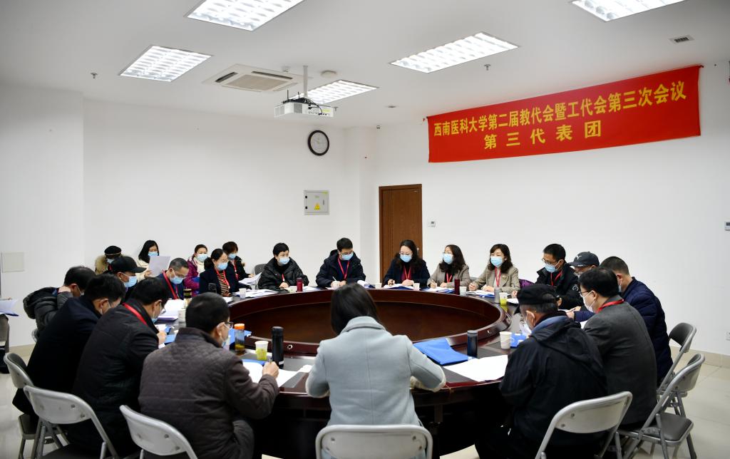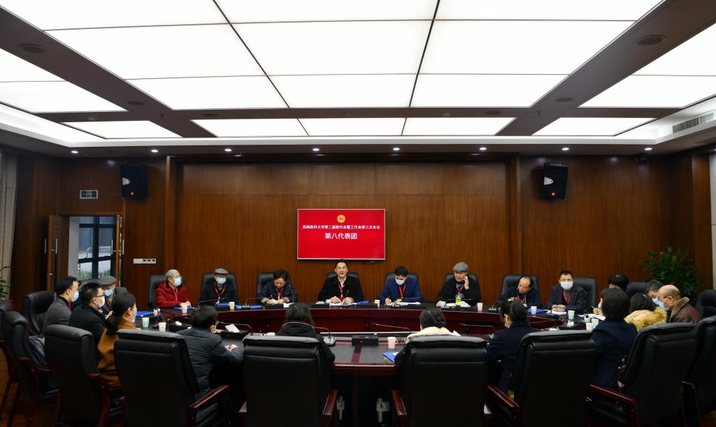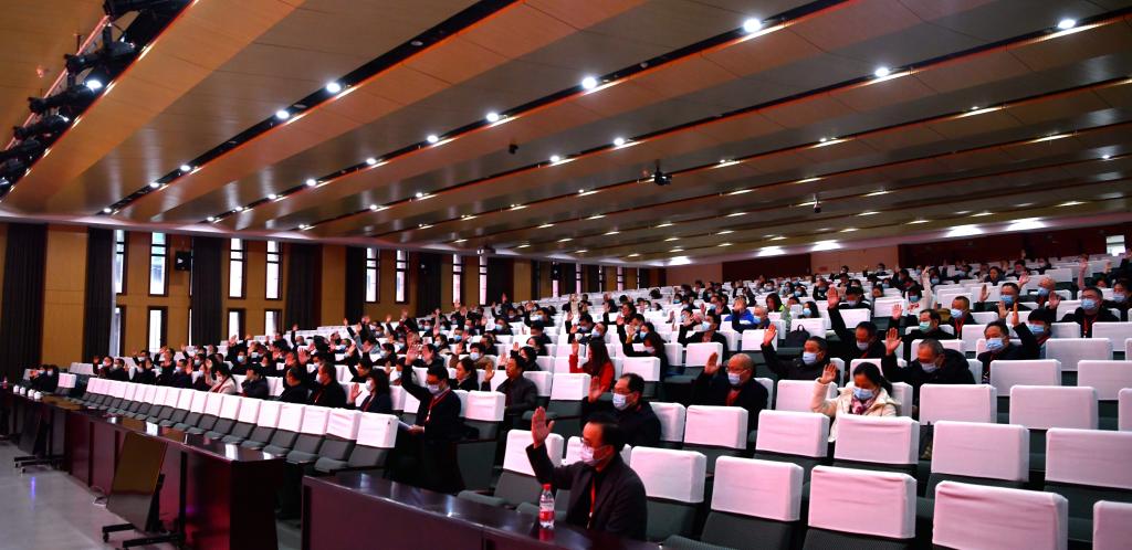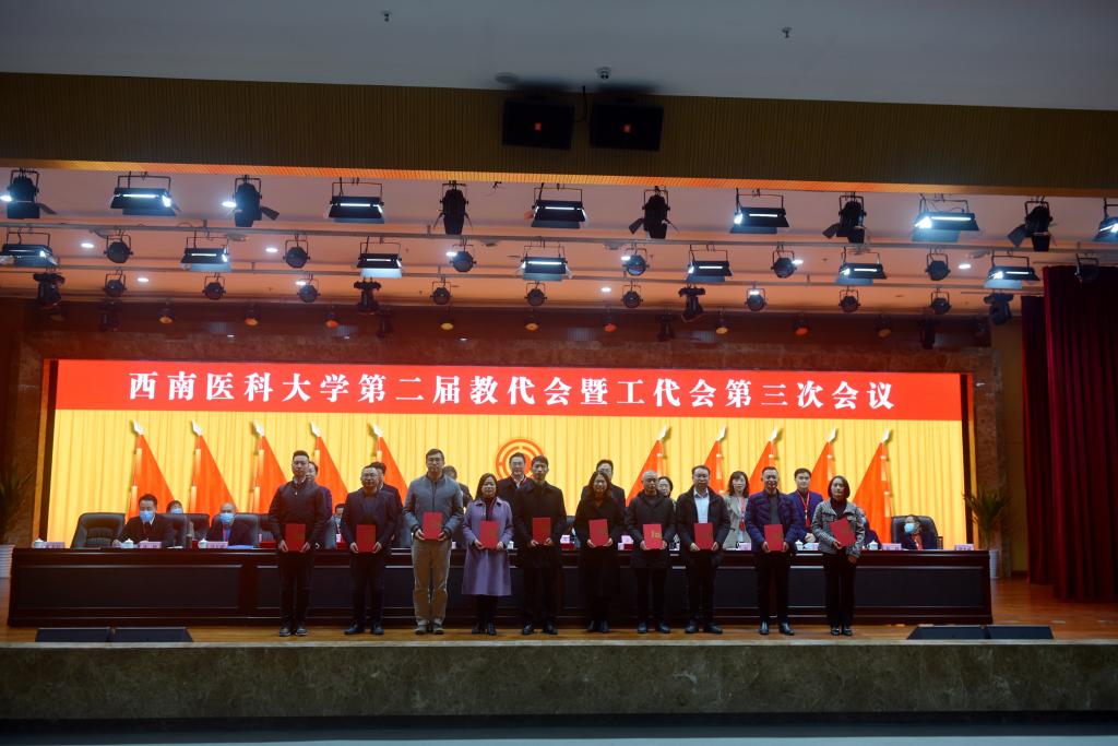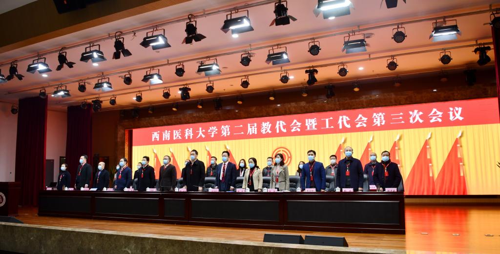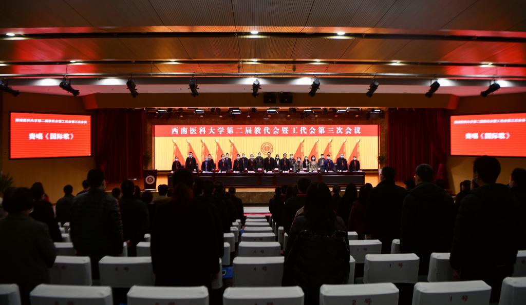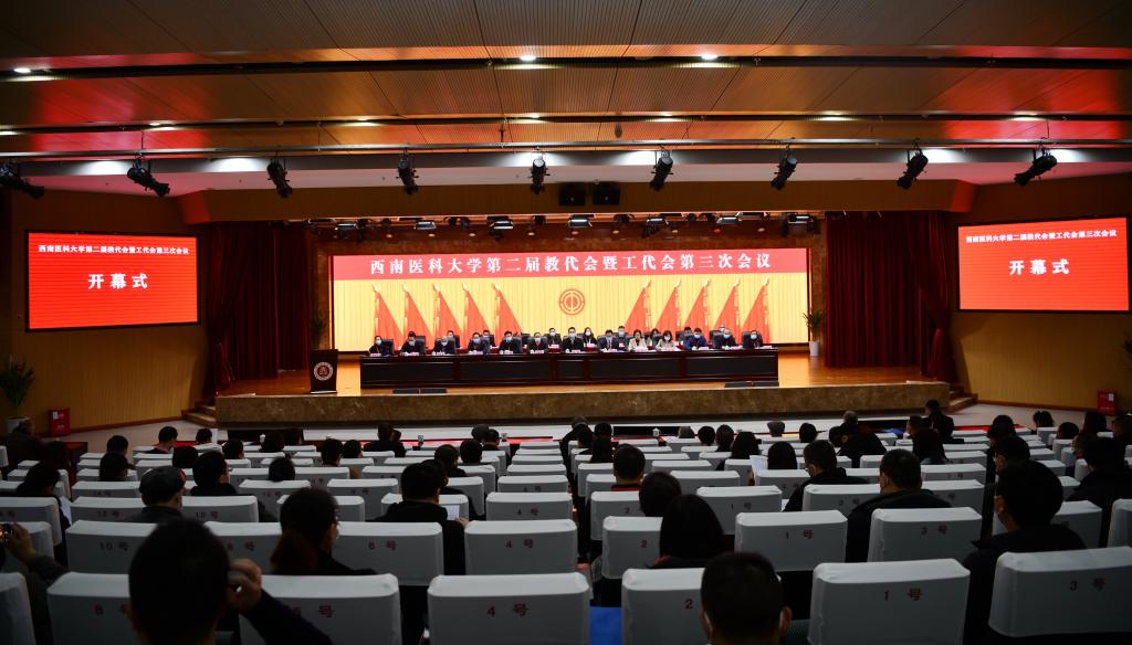 1月12日上午,西南医科大学第二届教代会暨工代会第三次会议第一次全体会议在城北校区德诚楼学术报告厅召开。校领导廖斌、张春祥、李尚志、刘毅、彭钢、何涛、聂敏海、代荣阳,正式代表、特邀代表、列席代表共计250余人,同心共进,共谋学校高质量发展之路。